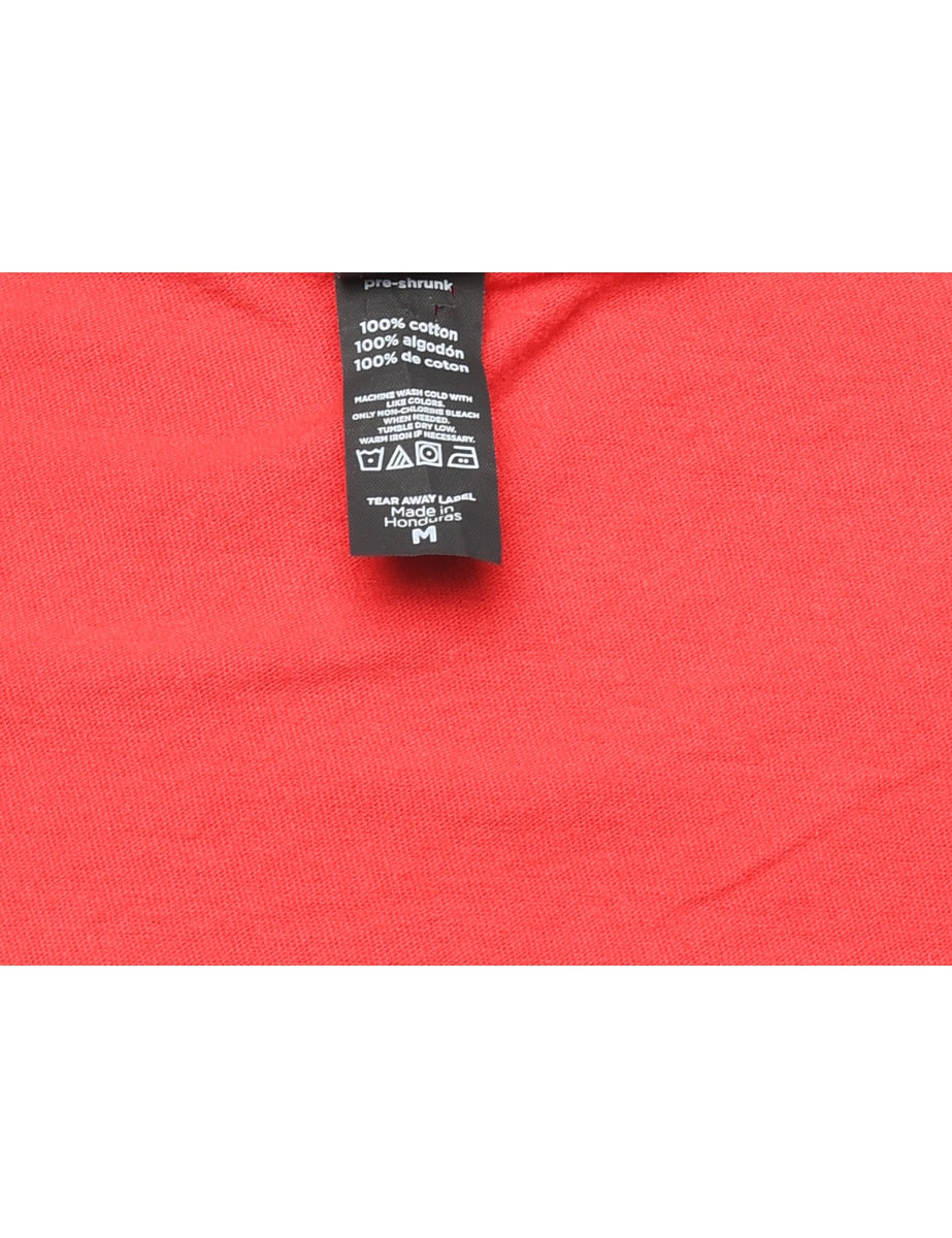 2000s slogan printed t-shirt. Comes in red.