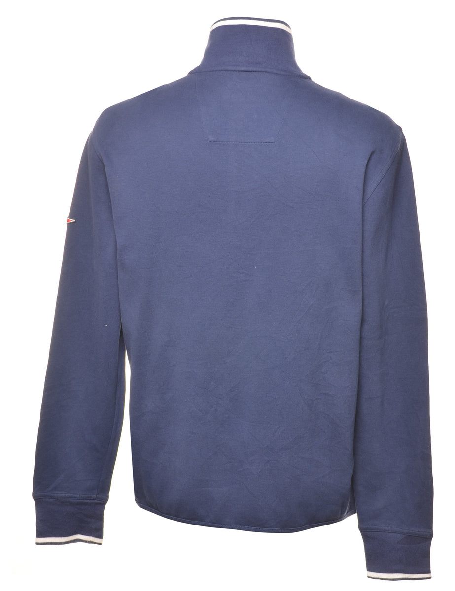 Nautica quarter zip plain sweatshirt in navy with a high neck.The size label mentions M but based on the actual measurements we consider it a size L.