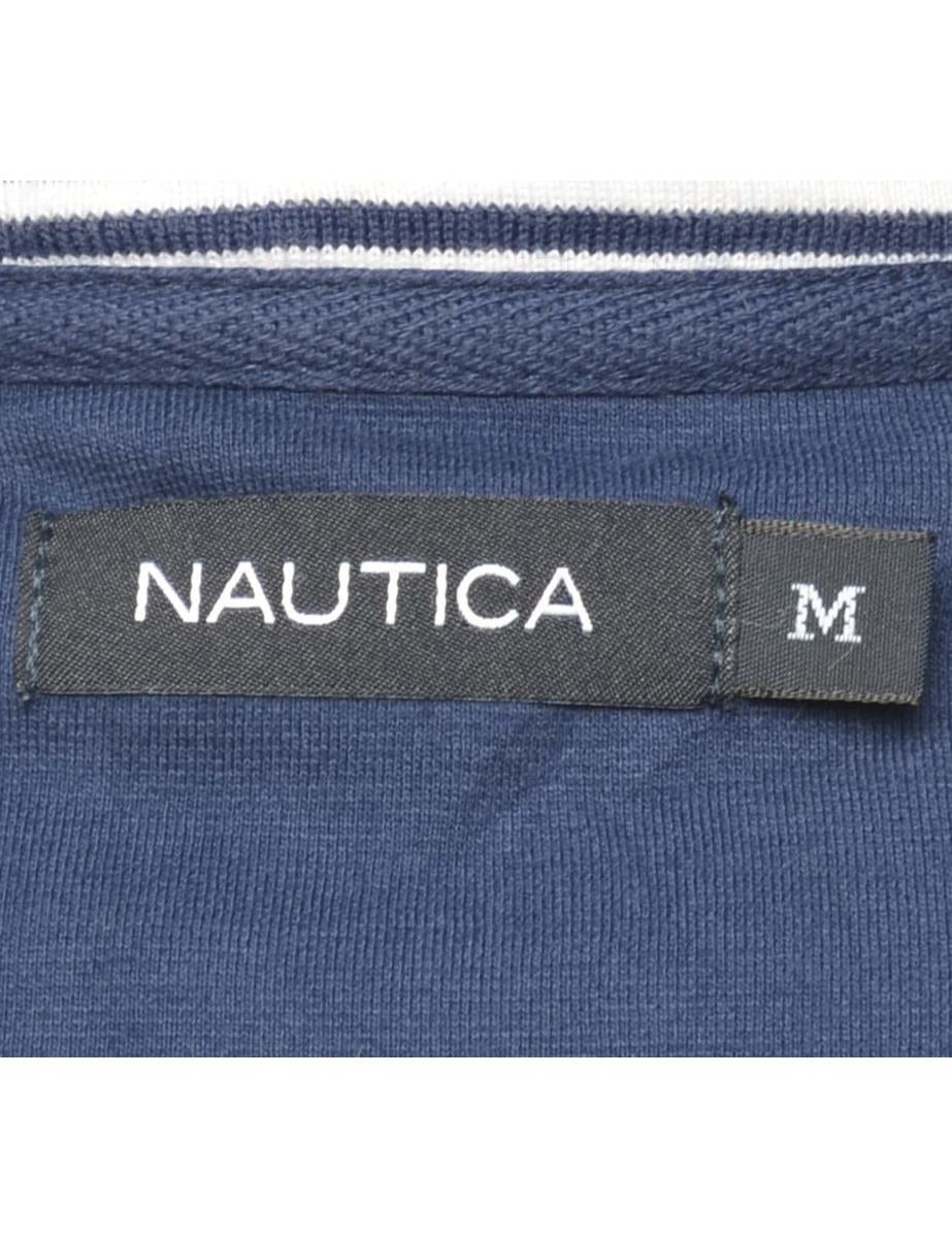 Vintage Nautica Y2K Style Quarter Zip Navy Plain Sweatshirt - L