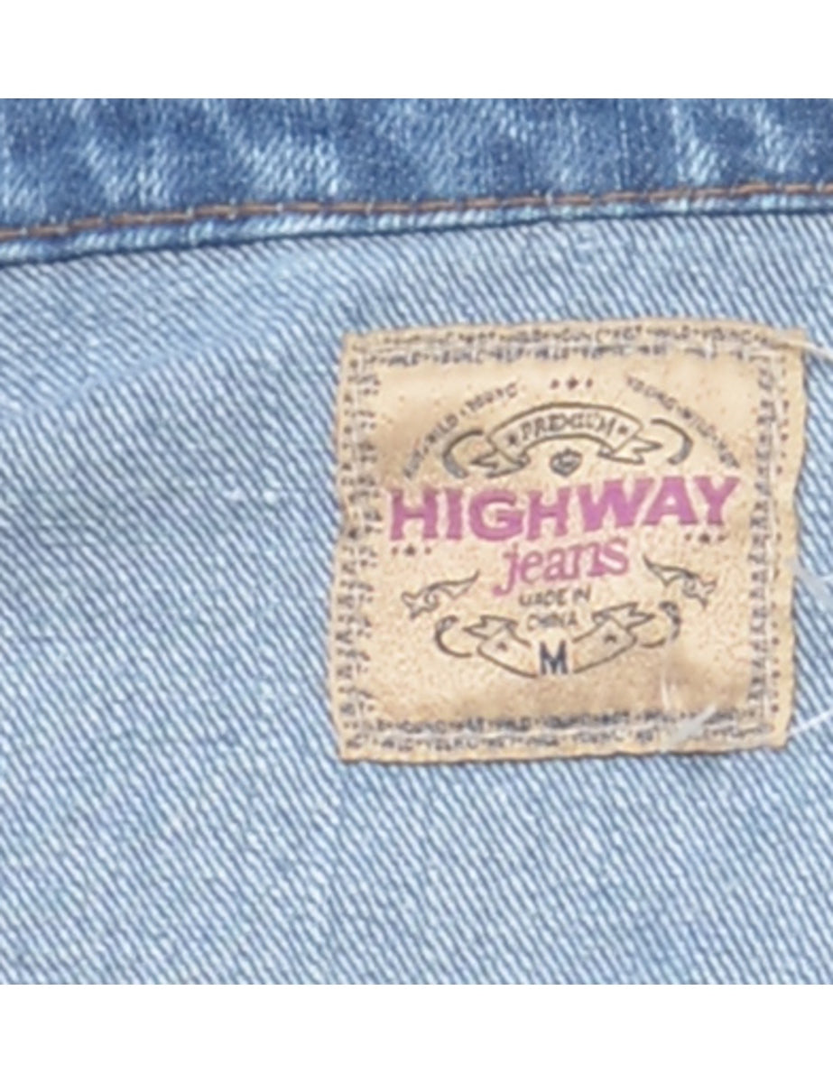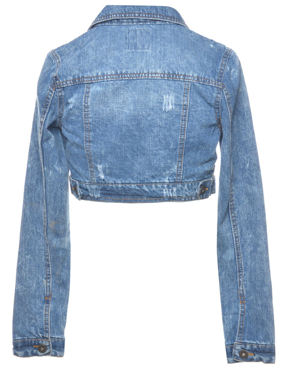 Vintage Y2K Cropped Medium Wash Denim Jacket - M