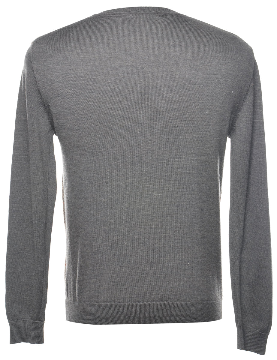 Long sleeved jumper comes in dark brown with a houndstooth check, a v-neck.