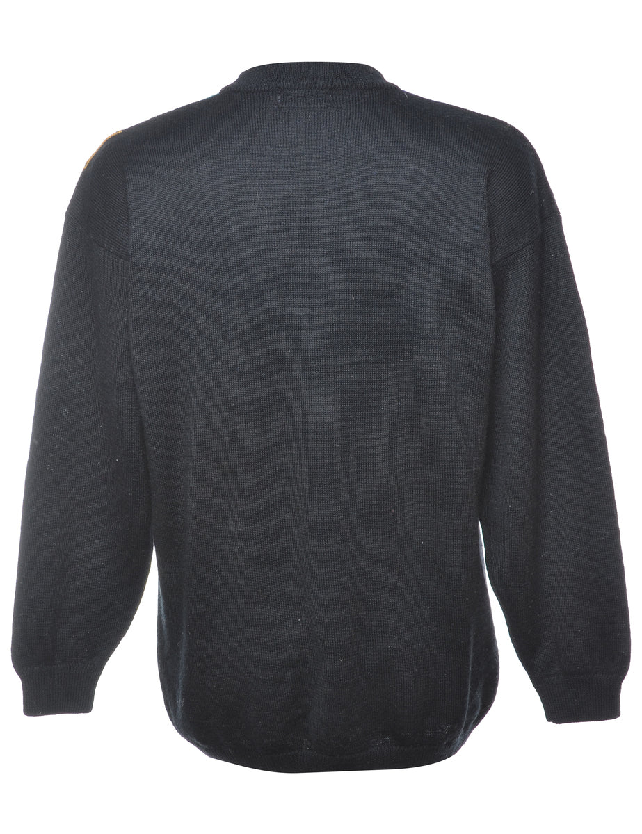 Argyle black jumper with a round neck.
