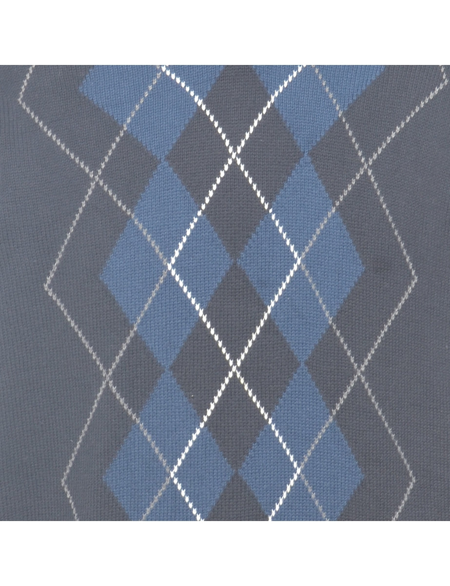 Argyle jumper. Comes in navy with a v-neck.
