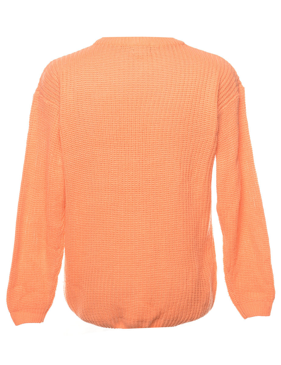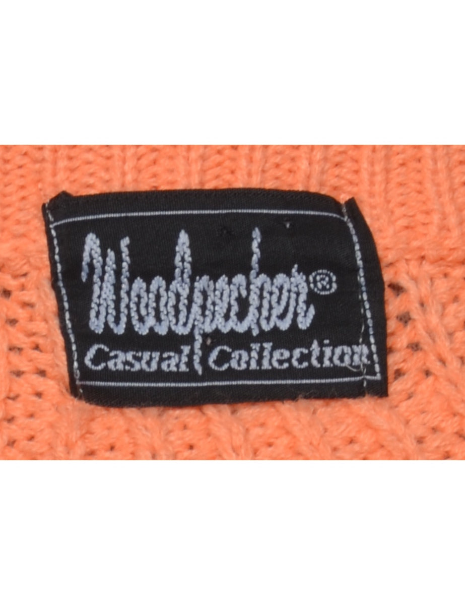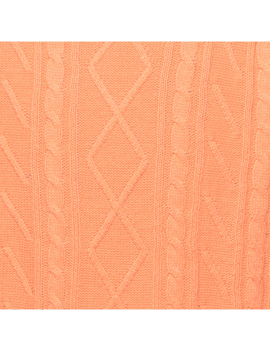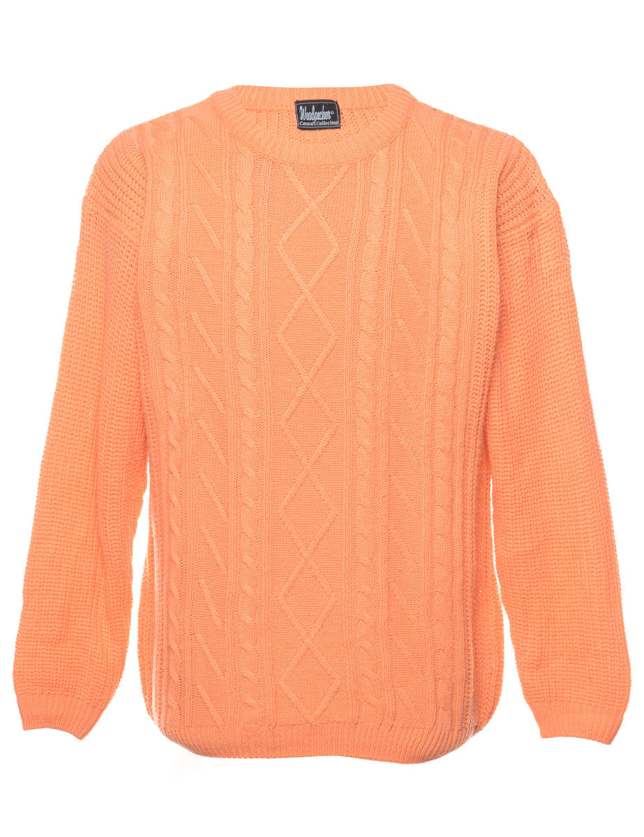Cable knit coral jumper with a crew neck.
