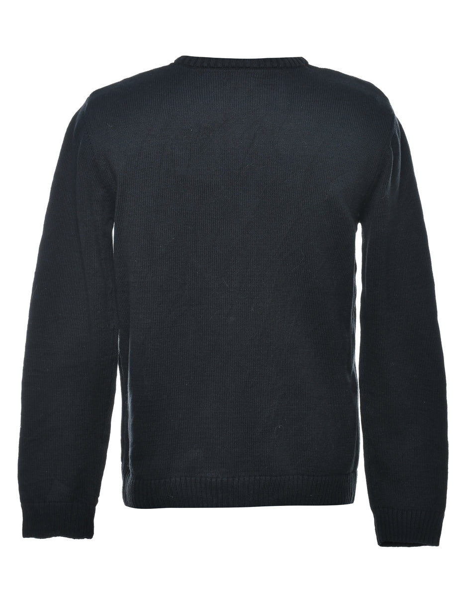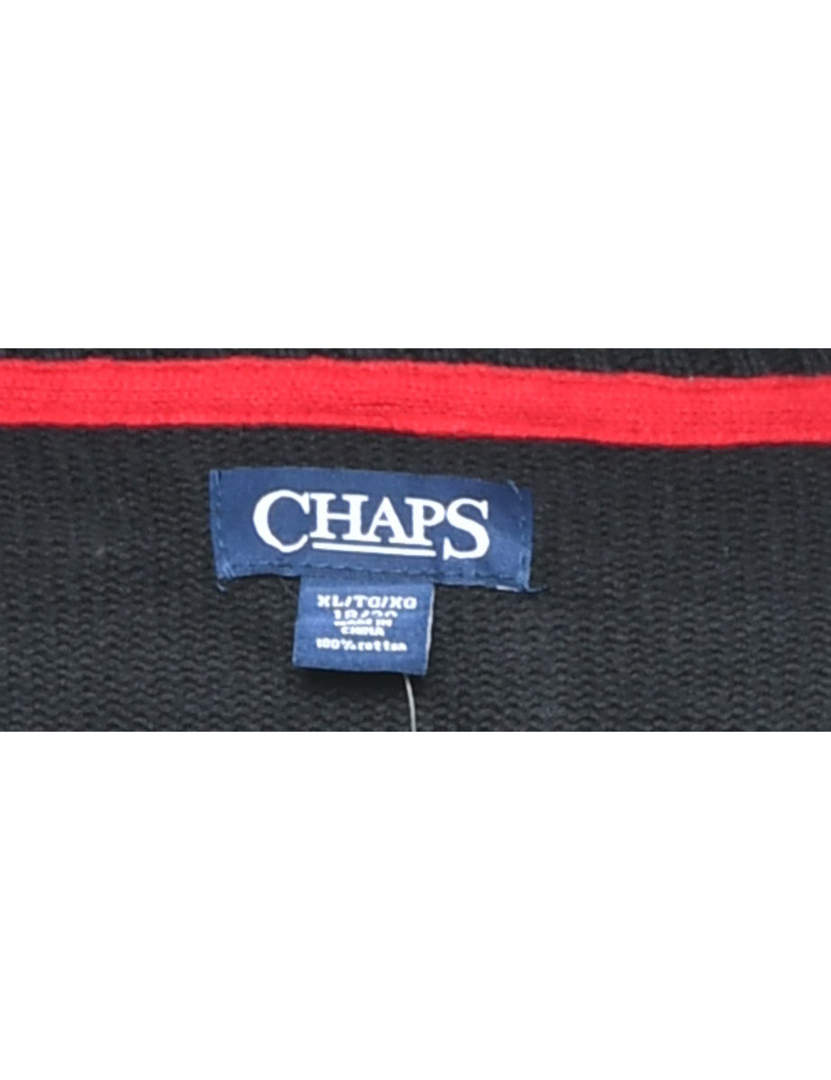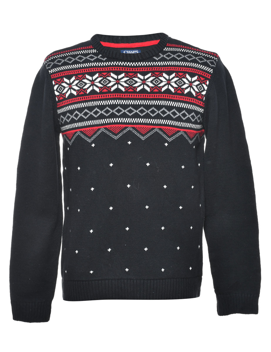 Chaps nordic jumper in black with a crew neck. The size label mentions XL but based on the actual measurements we consider it a size S.