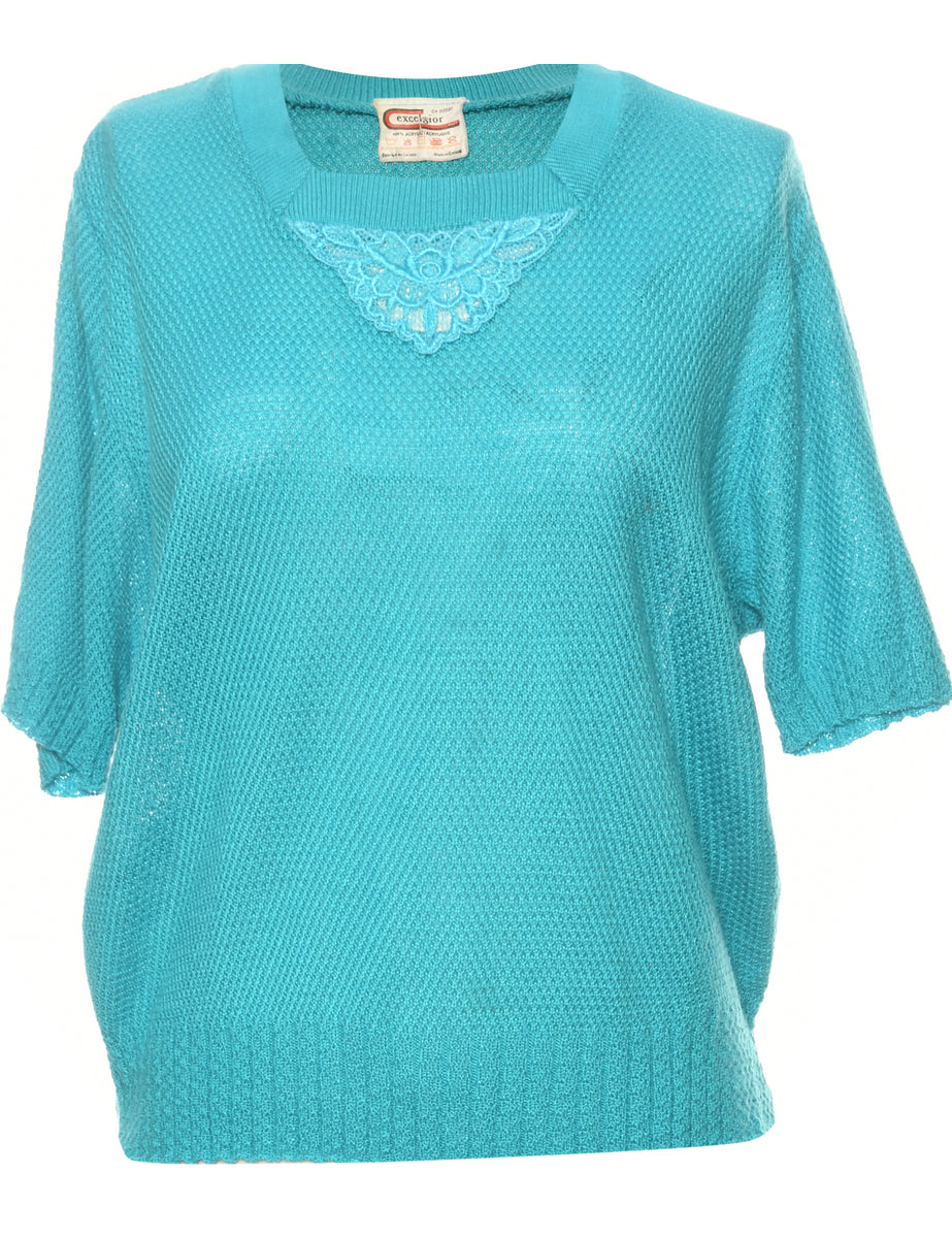 Vintage Fine Knit Light Blue Jumper - L