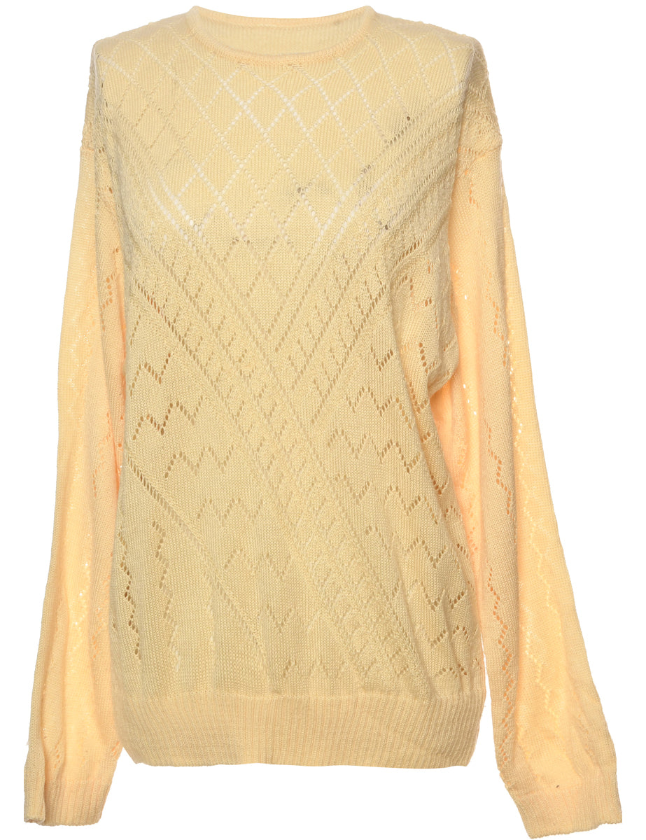Vintage Geometric Print Cream Jumper - L