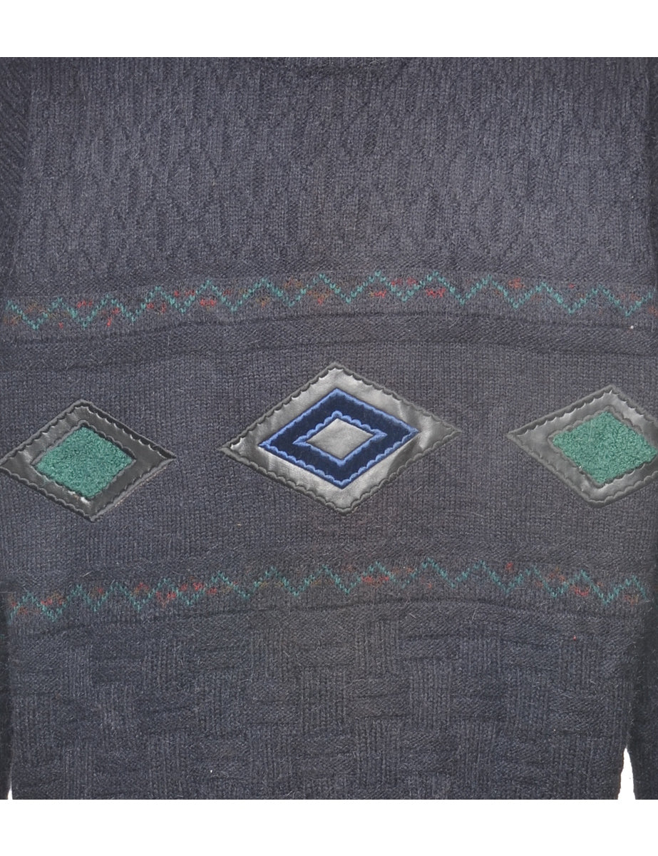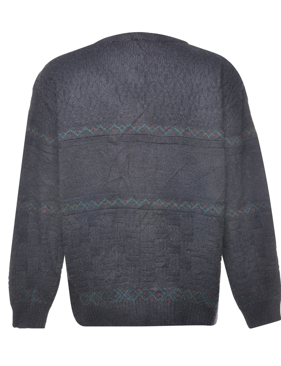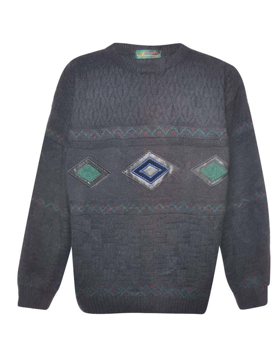 Vintage Grey Embroidered Argyle Design Jumper - L
