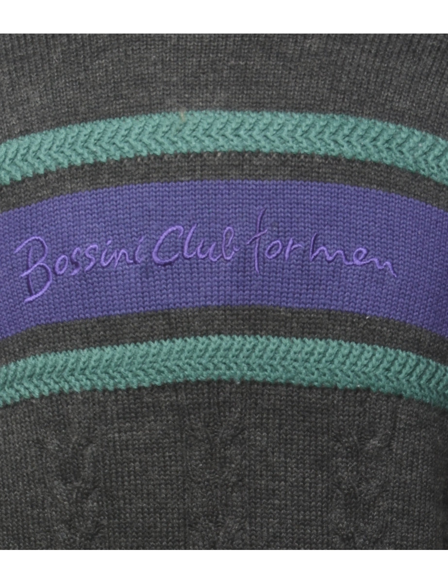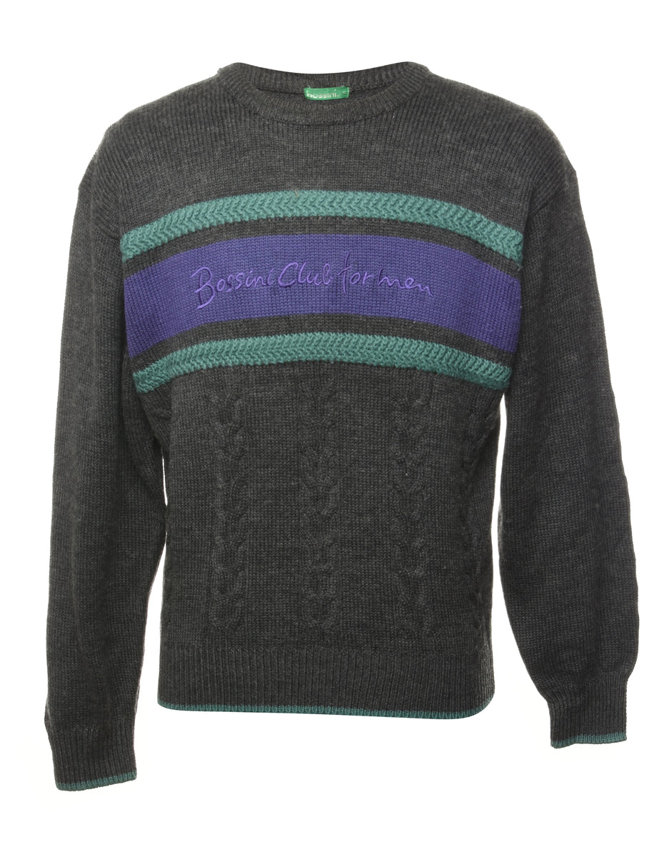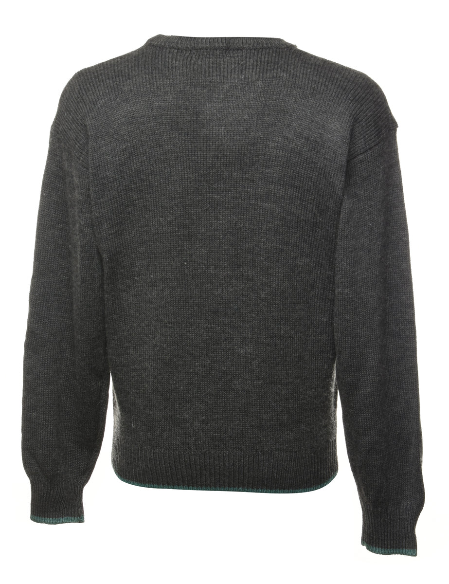 Vintage Grey, Purple & Green Embroidered Jumper - S