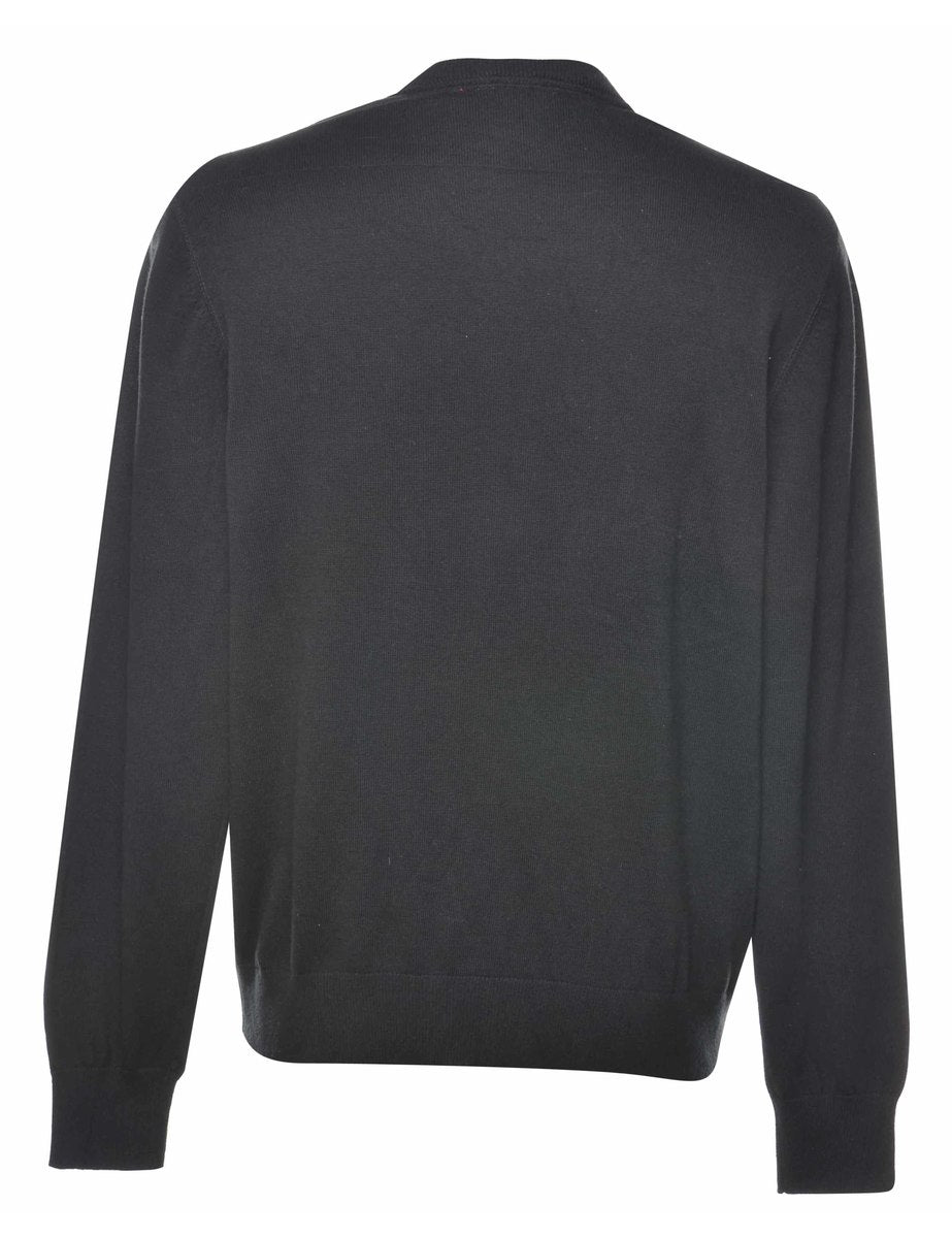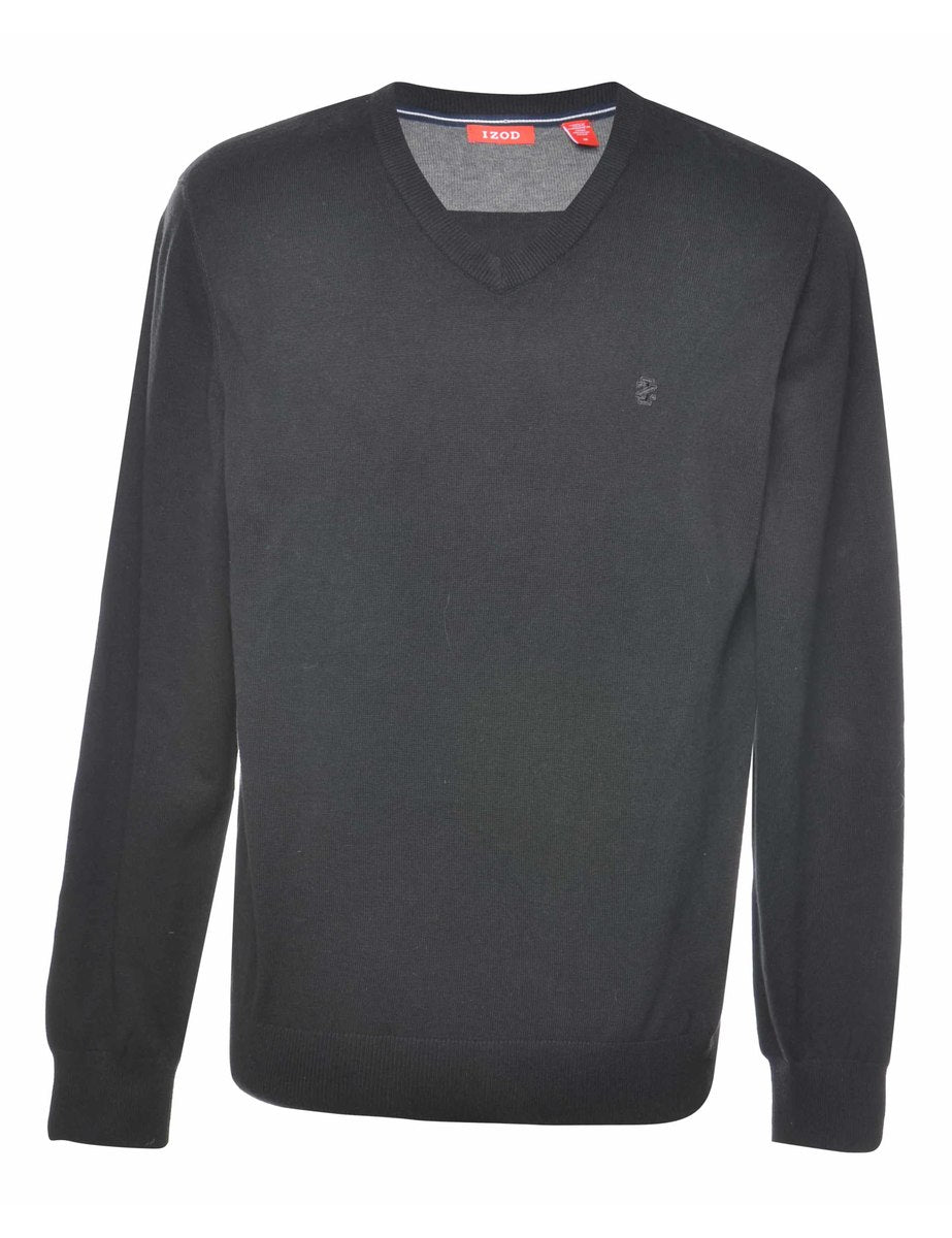 Izod long sleeved jumper. Comes in black with a v-neck.