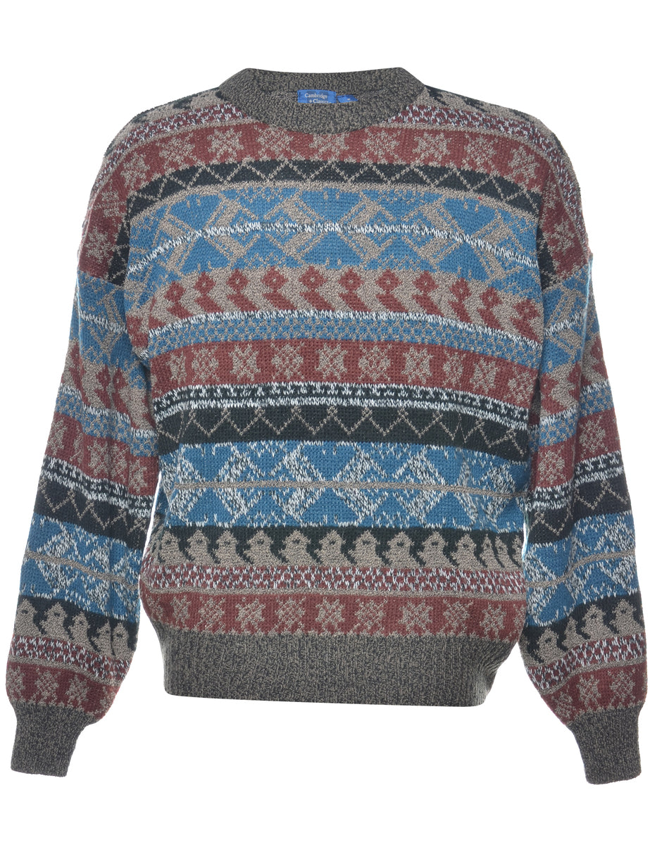 Long sleeved jumper comes in multi-colour with a crew neck.