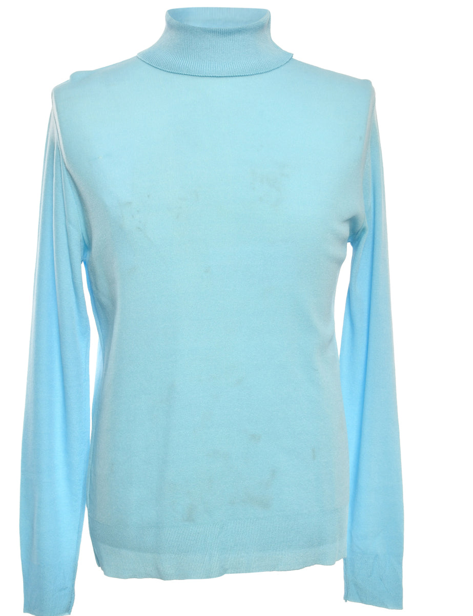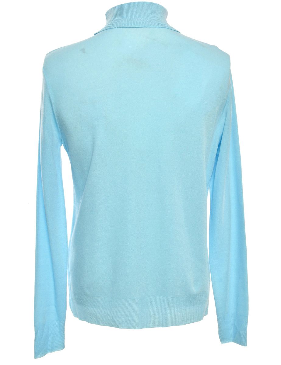 Long sleeved polo neck jumper comes in light blue.