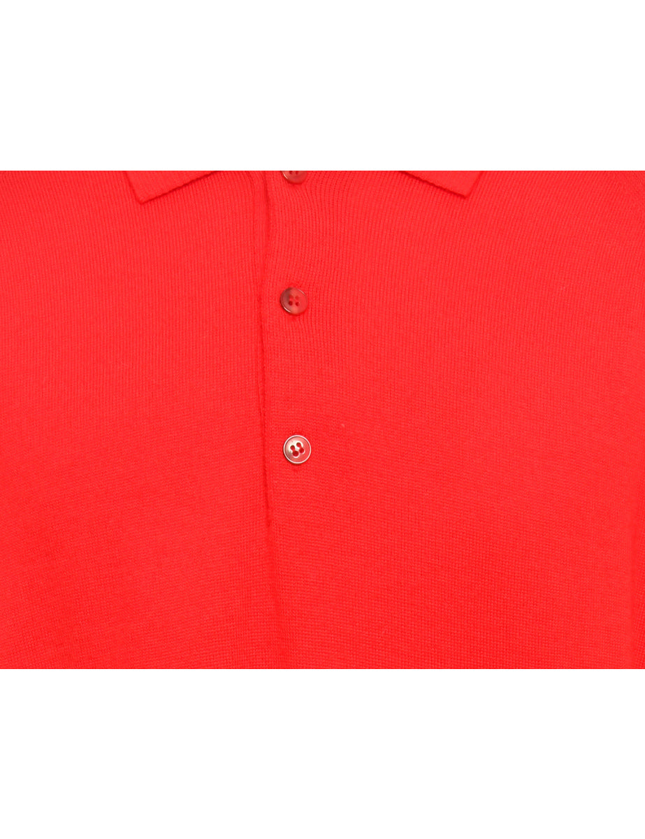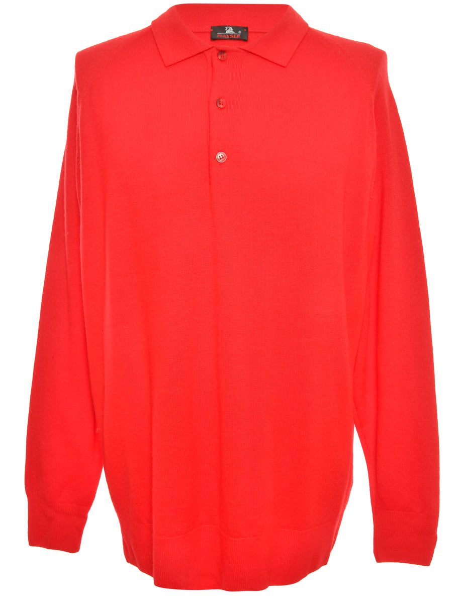 Long sleeved jumper comes in red with a button front neck.