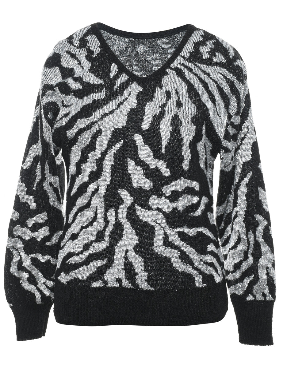 Lurex thread pattern jumper in black & silver with a v-neck.