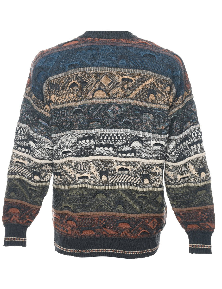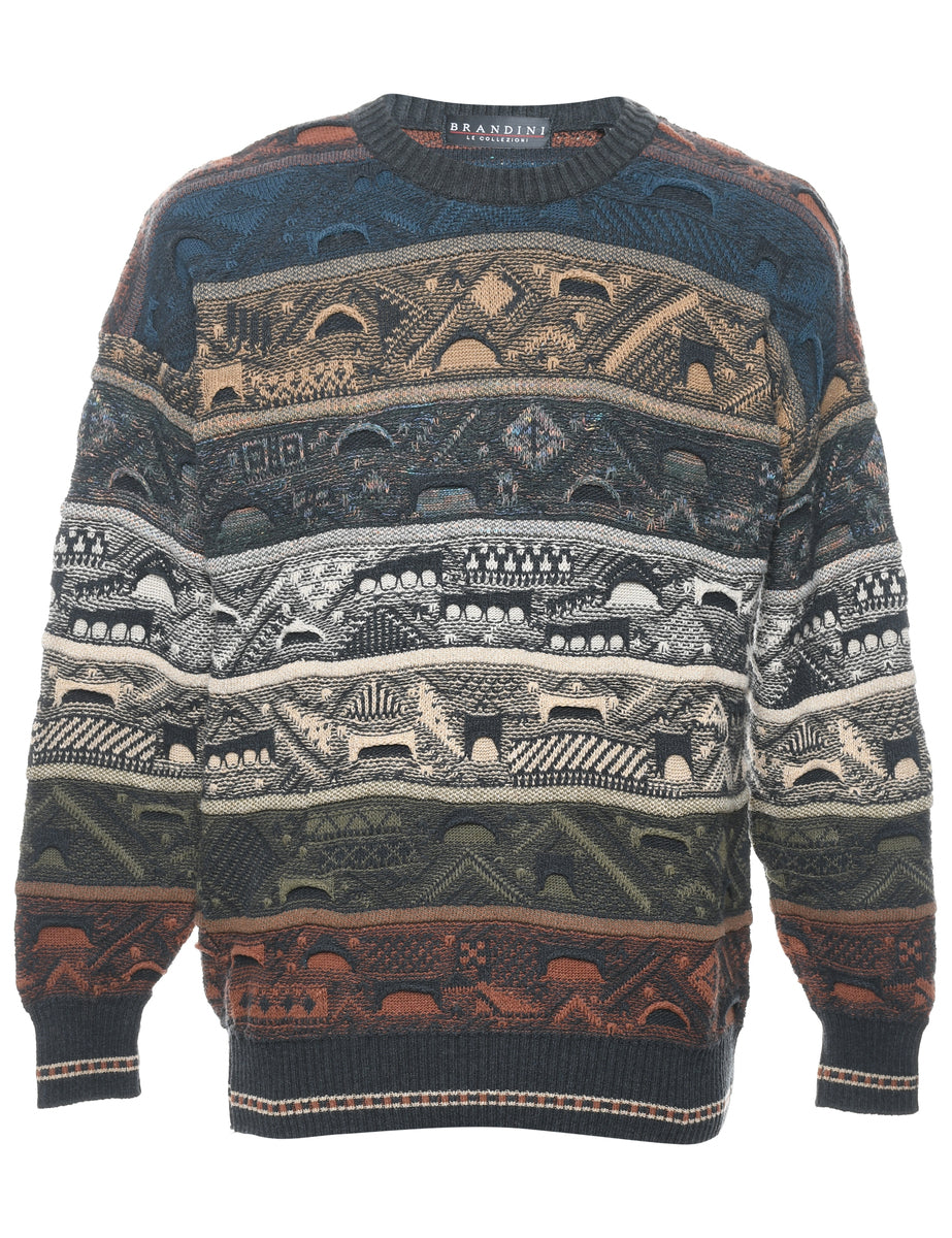 Long sleeved jumper. Comes in multi-colour with a crew neck.