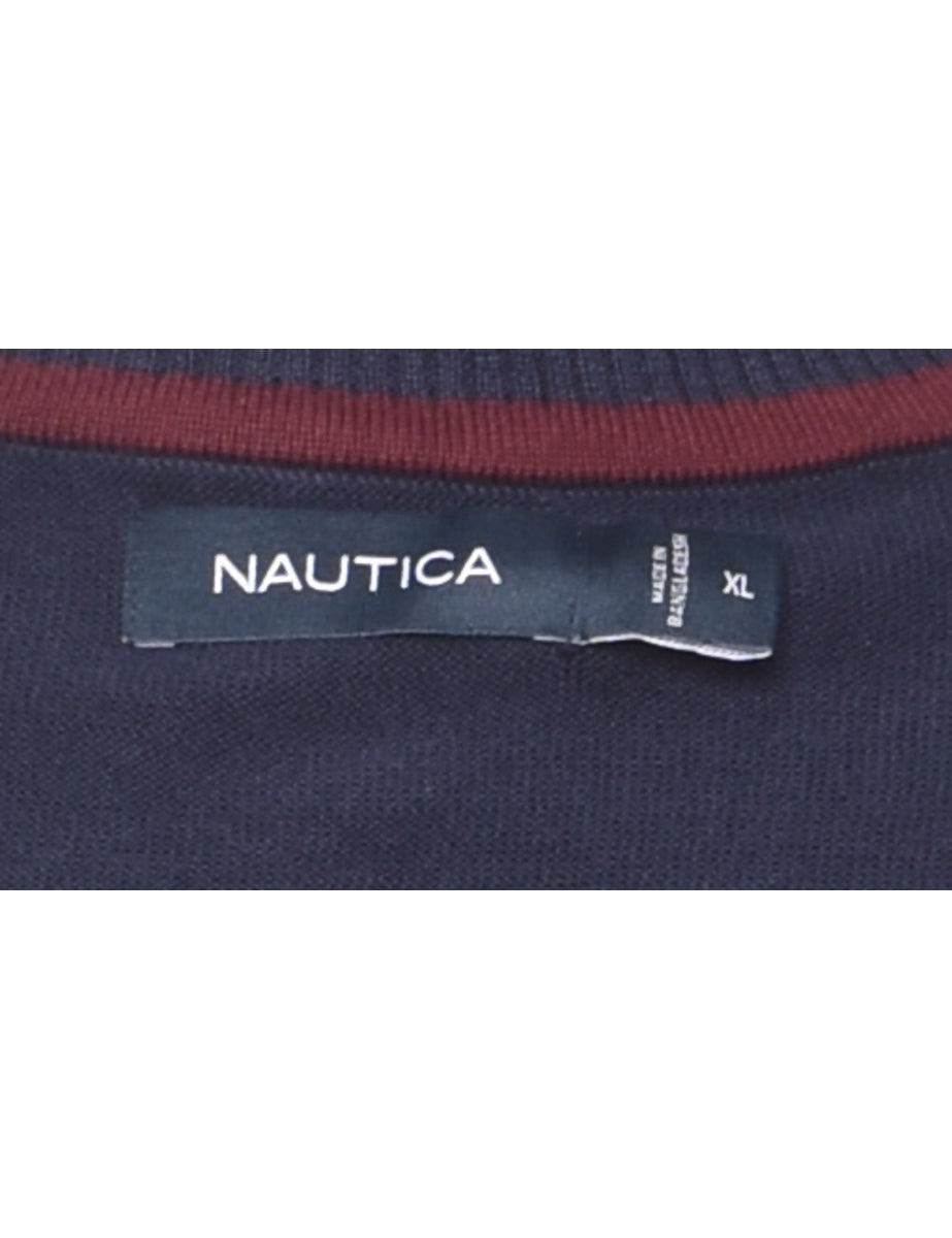 Nautica quarter zip jumper with stripy pattern. Comes in navy & light grey.