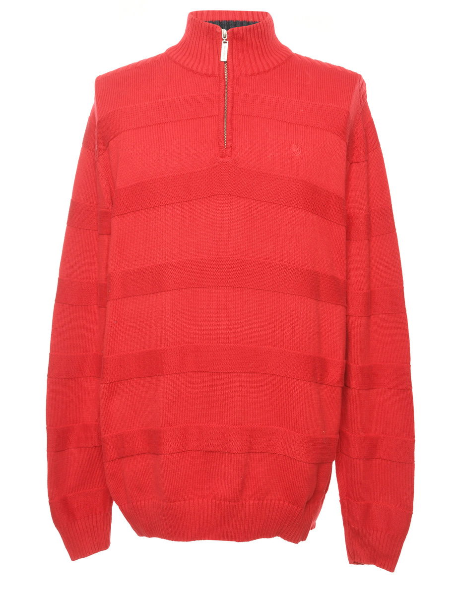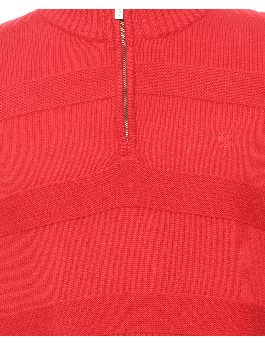 Quarter zip red jumper with a ribbed neck and cuffs.