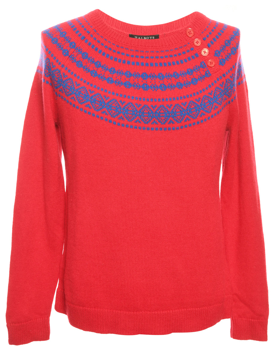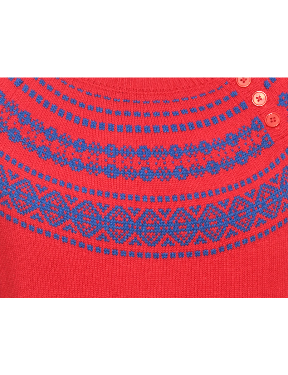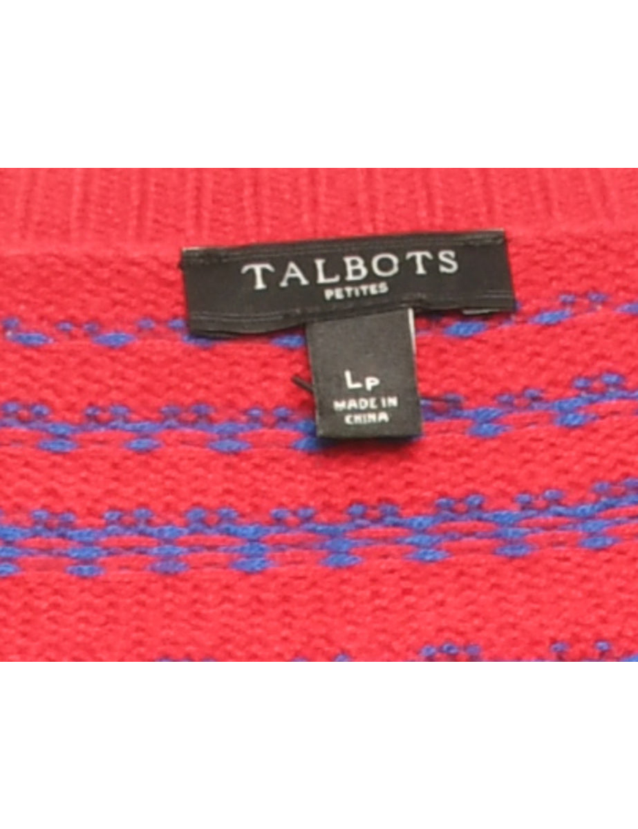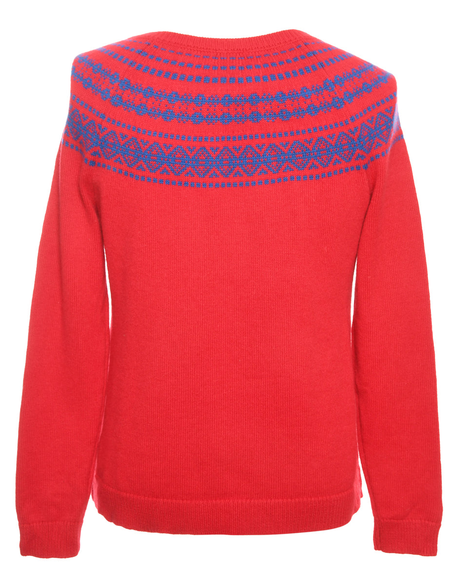 Vintage Red & Blue Patterned Knit Cardigan - L