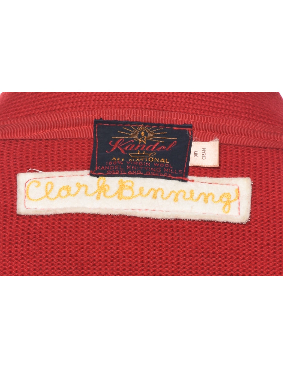 Vintage 1960s Red Button Front Varsity Cardigan - L