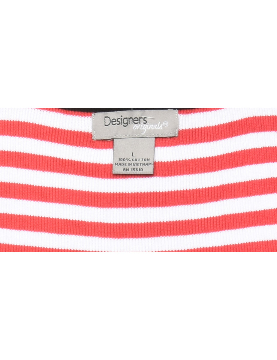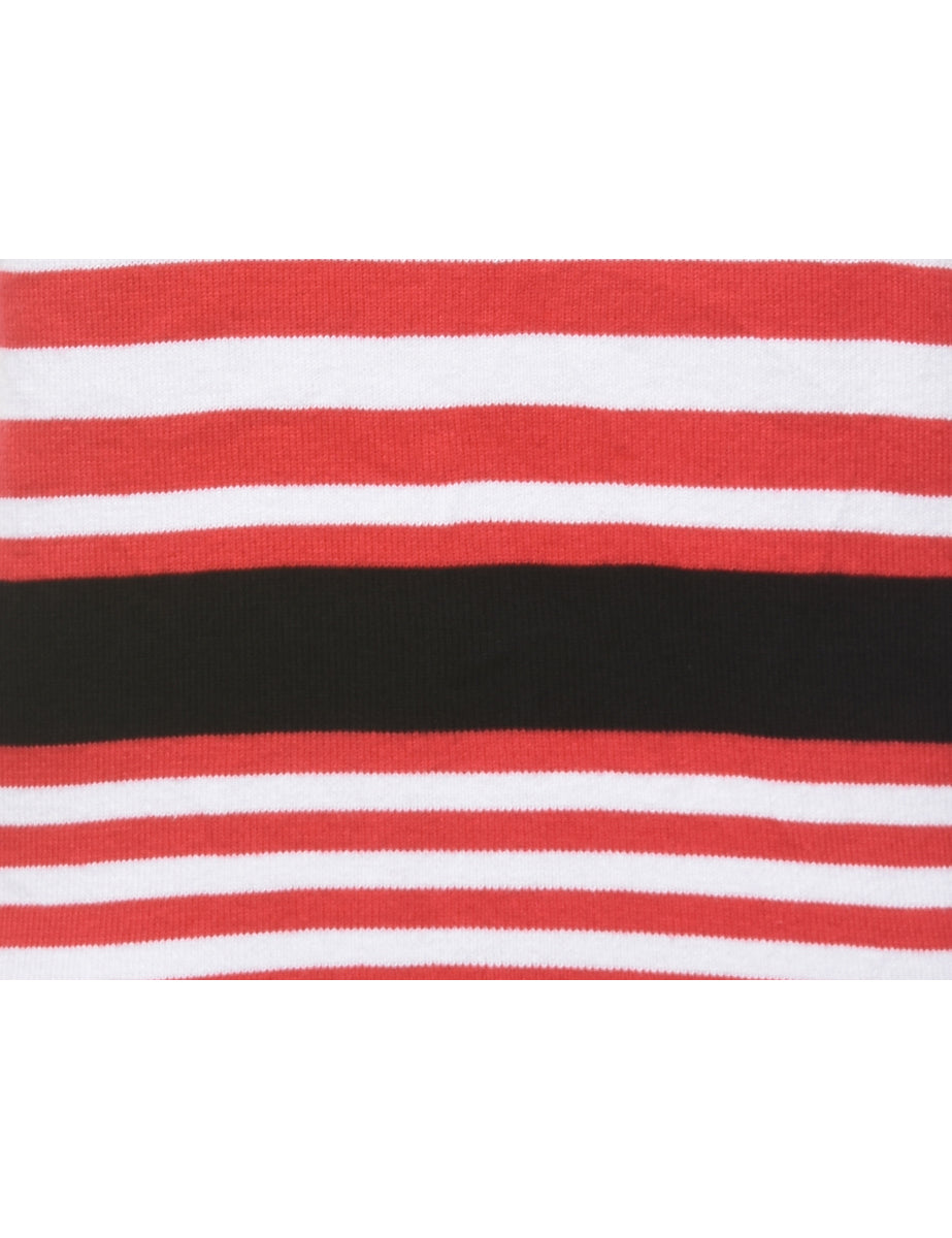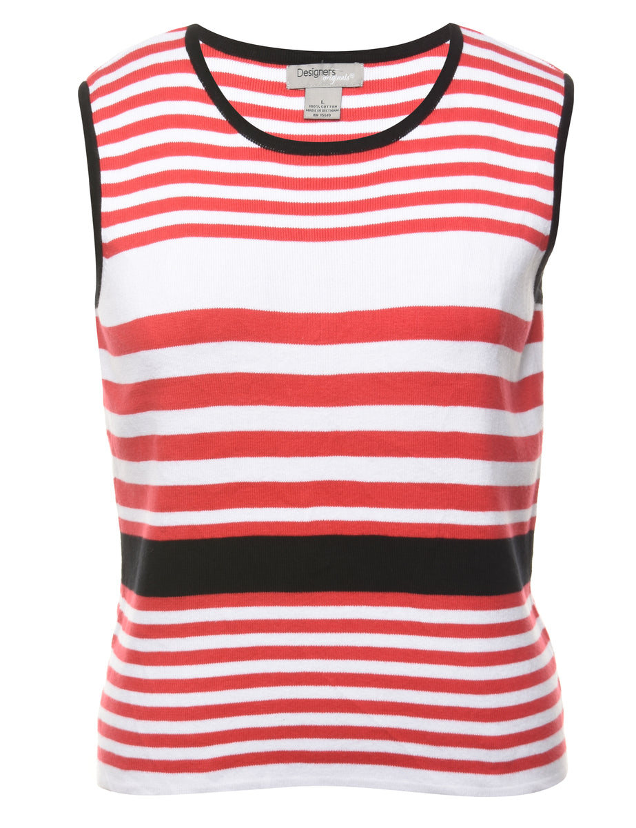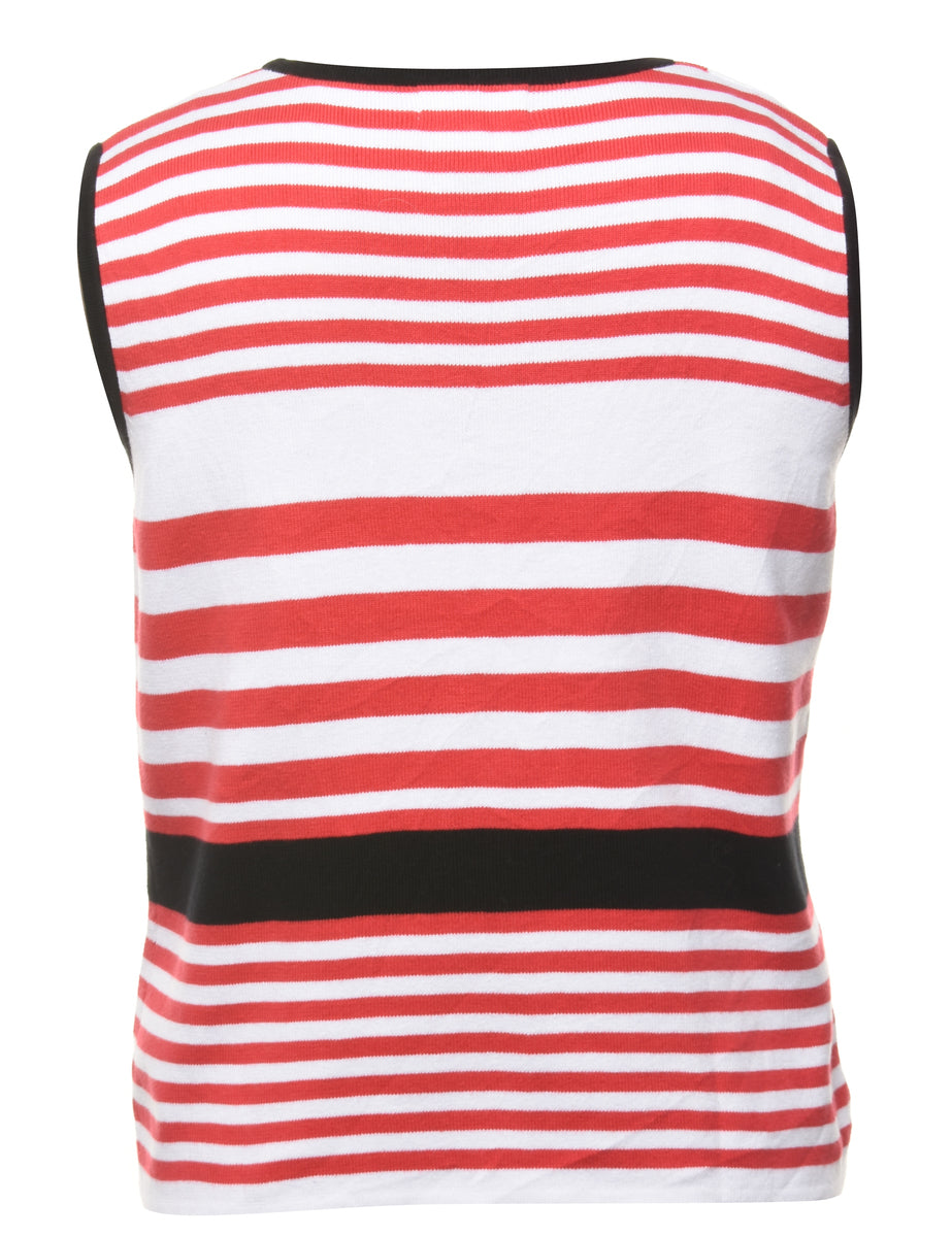 Striped sweater vest. Comes in white & red with contrasting trim.