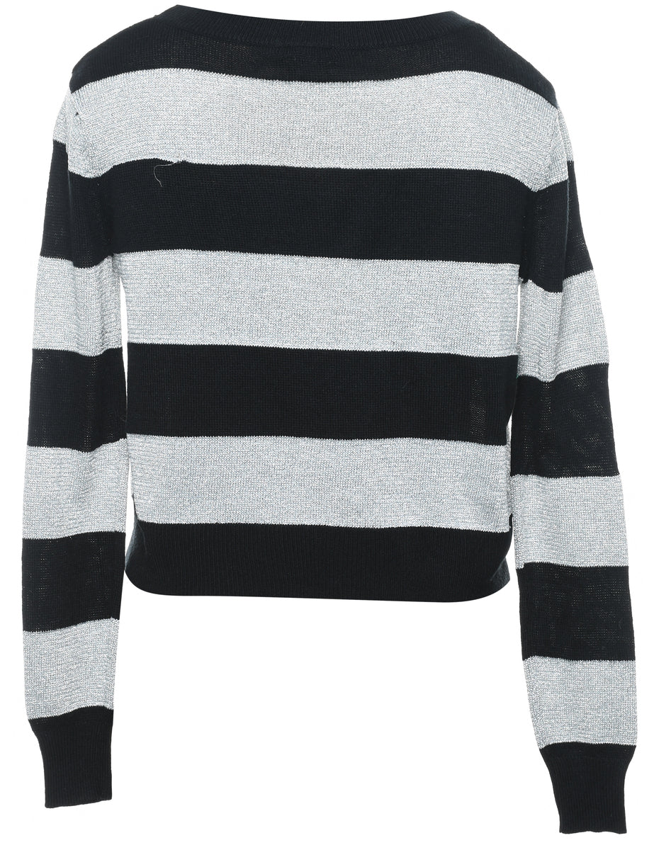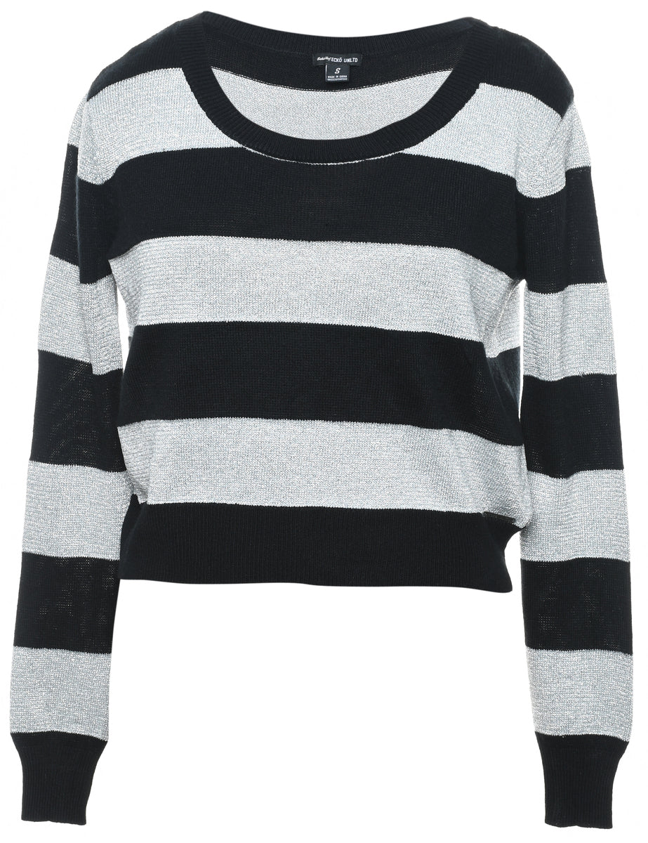 Two tone jumper with lurex thread pattern. Comes in black & grey with a round neck.
