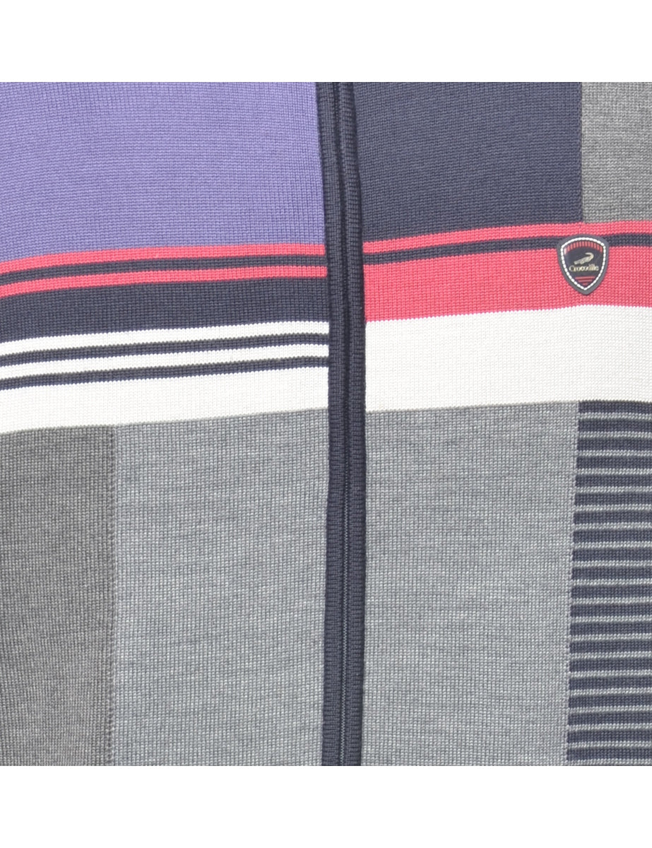 Zip front cardigan. Comes in multi-colour with ribbed cuffs and waistband.