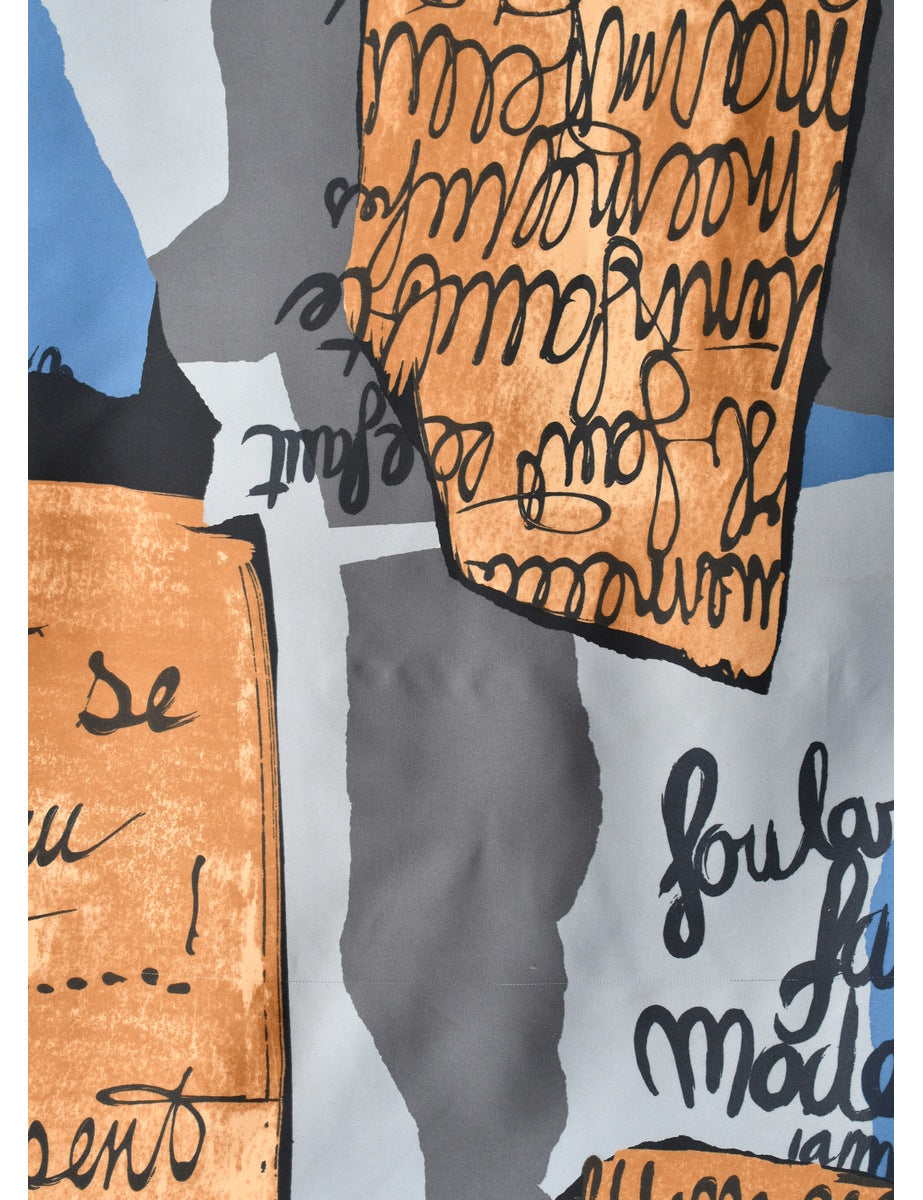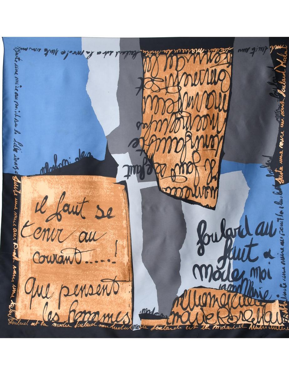 Brown, Blue & Gold Writing Design Scarf - L