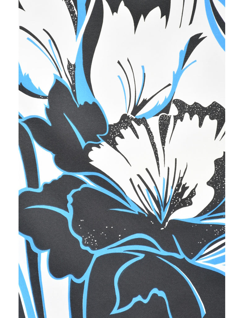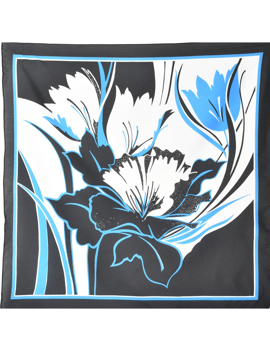 Floral Blue, Grey & White Head Scarf - S