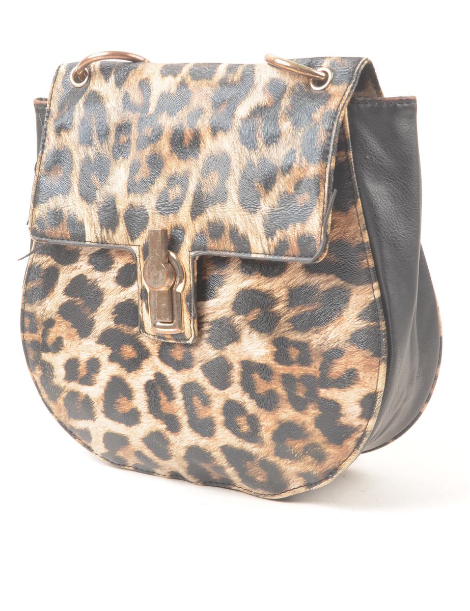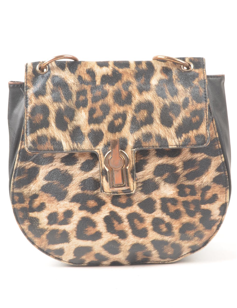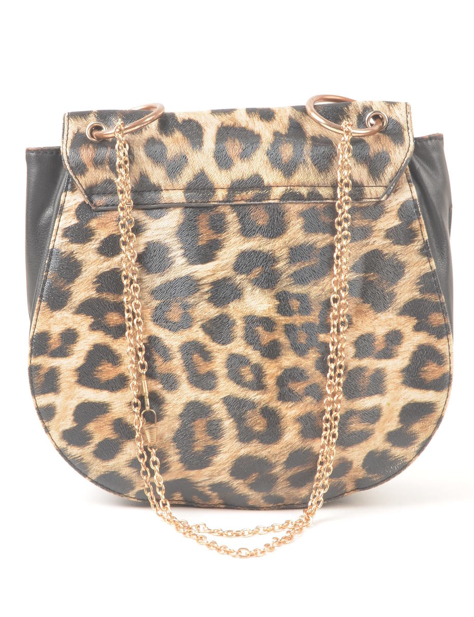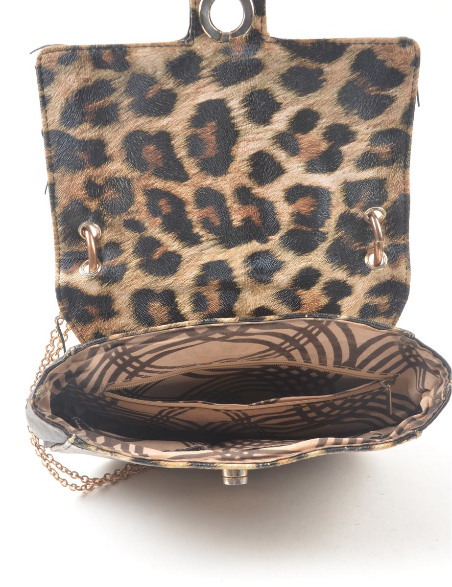Leopard Pattern Gold Chain Handle Crossbody Bag - S