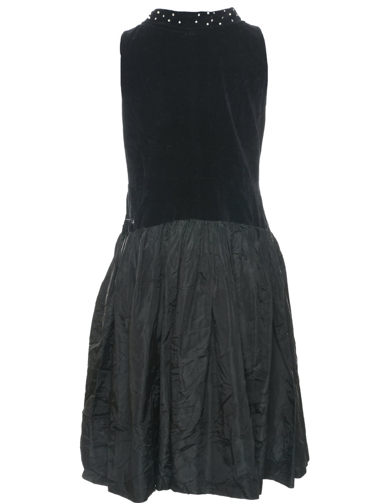 Vintage Velvet Black Evening Dress - M