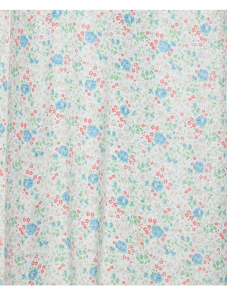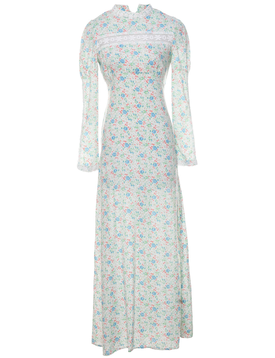 1970s Floral Print Maxi Length Prairie Style Dress - S