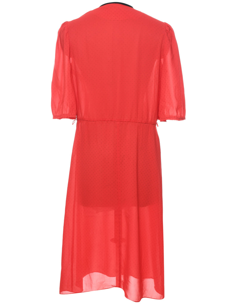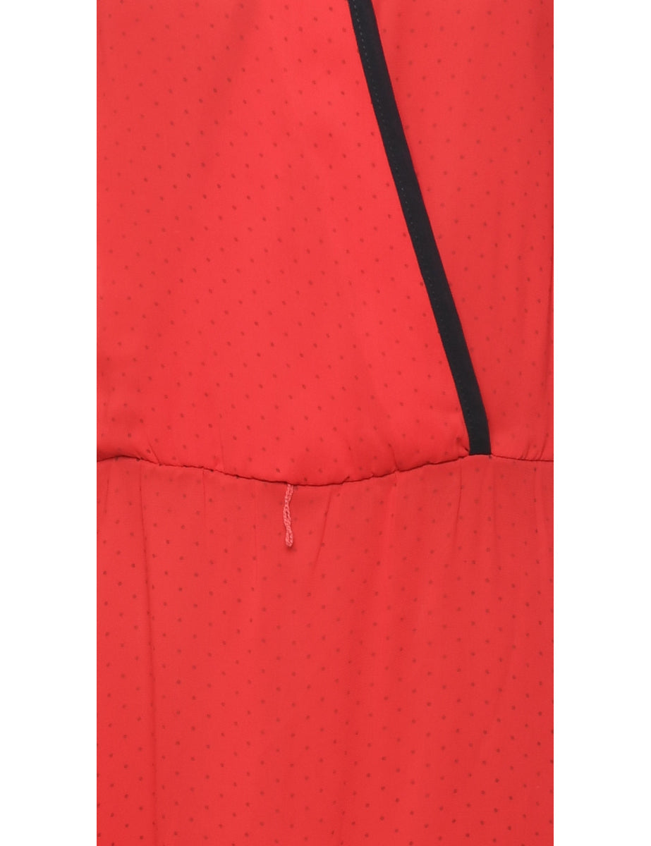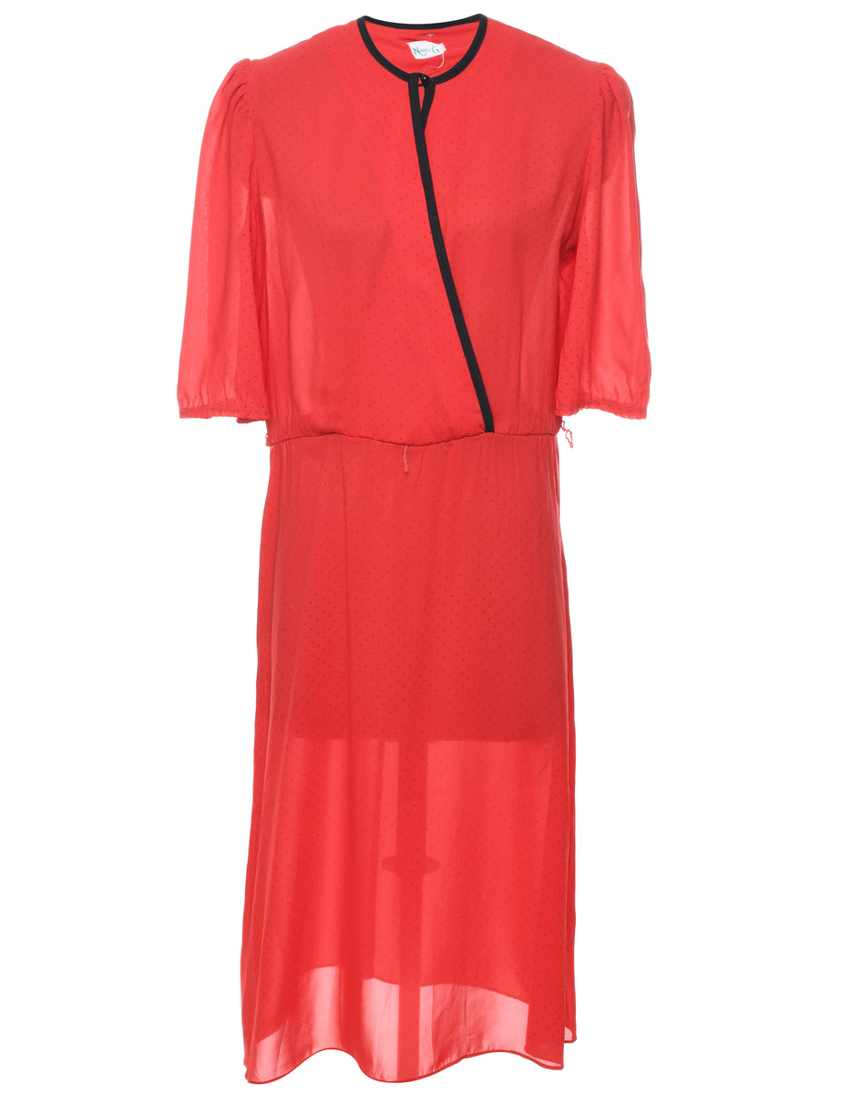 Midi length red 1970s dress with contrasting trim.