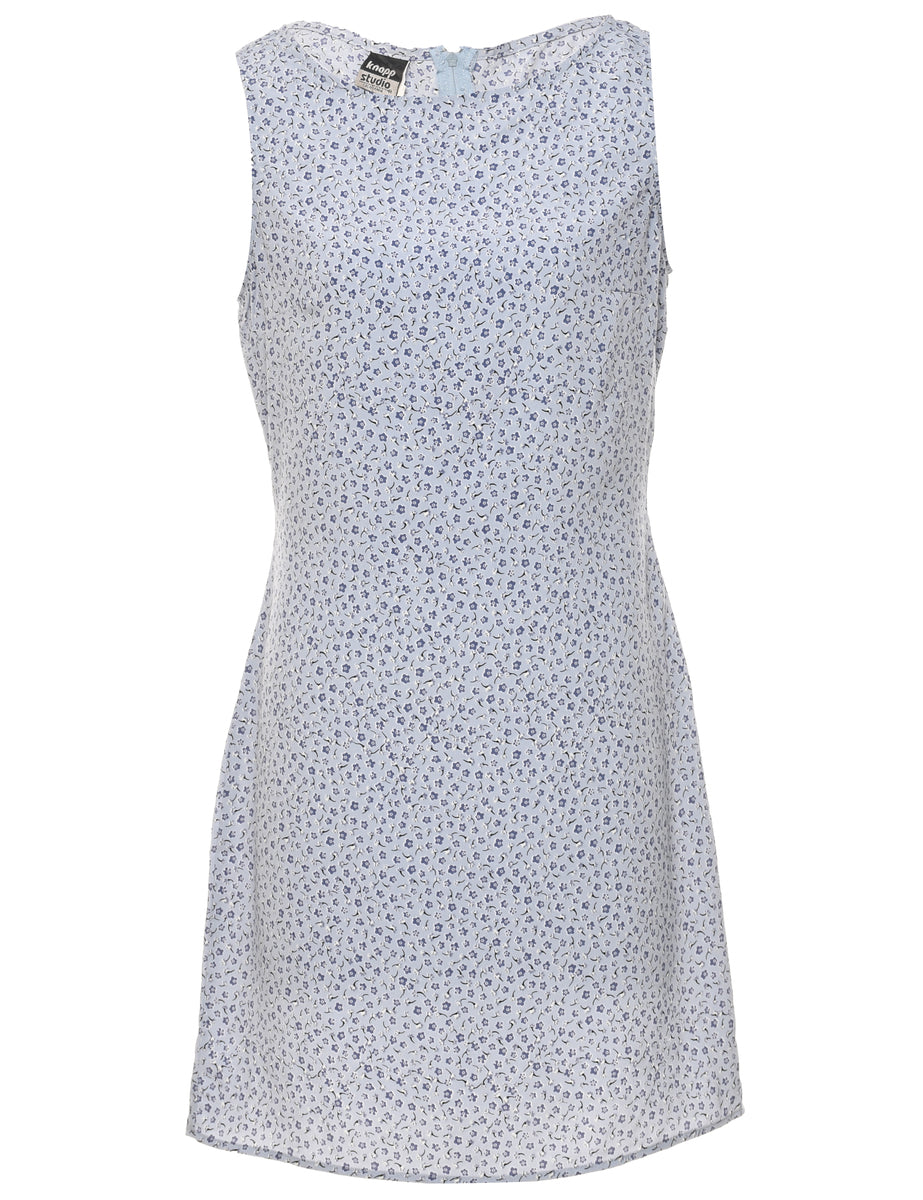 Floral print dress. Comes in blue with a round neck.