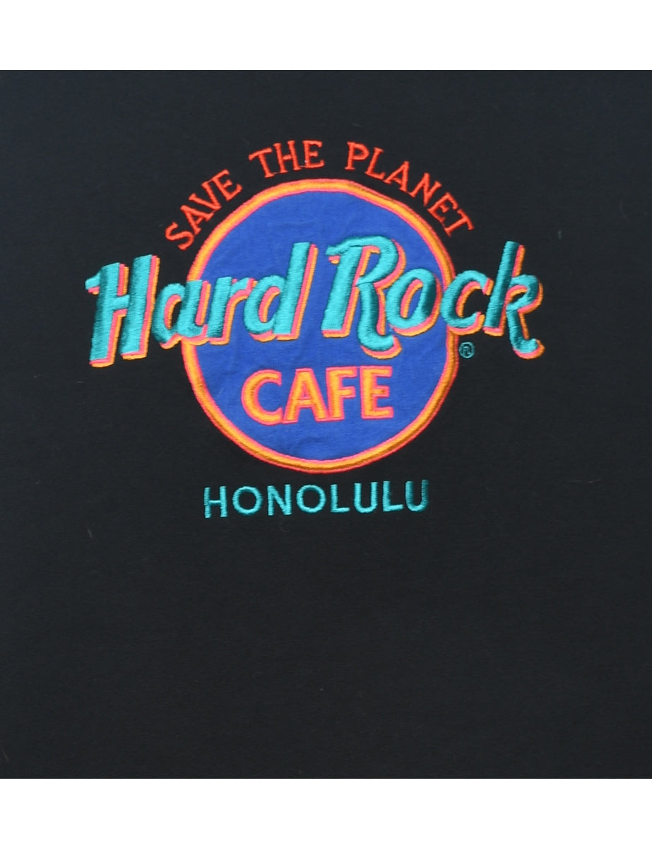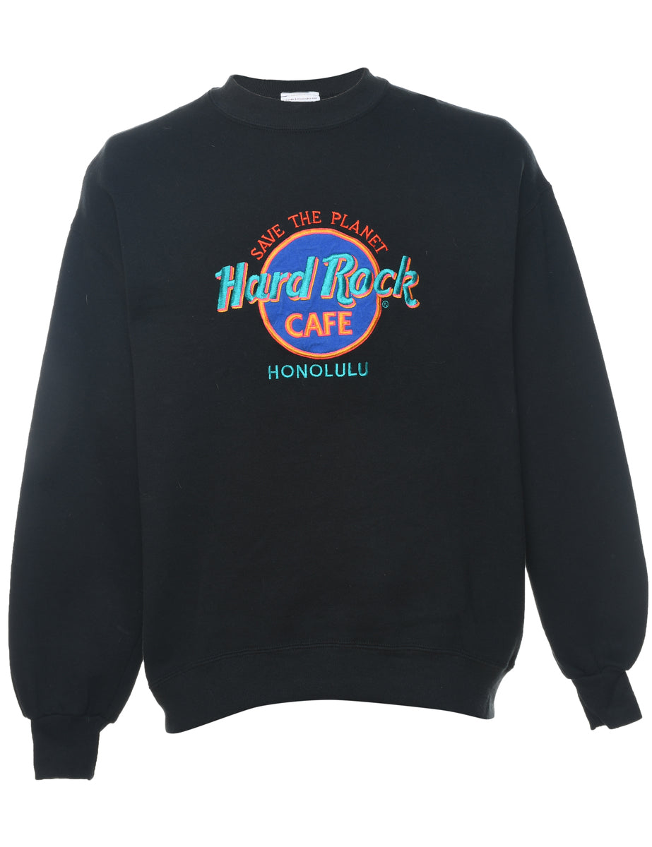 Vintage 1990s Hard Rock Embroidered Black Sweatshirt - L