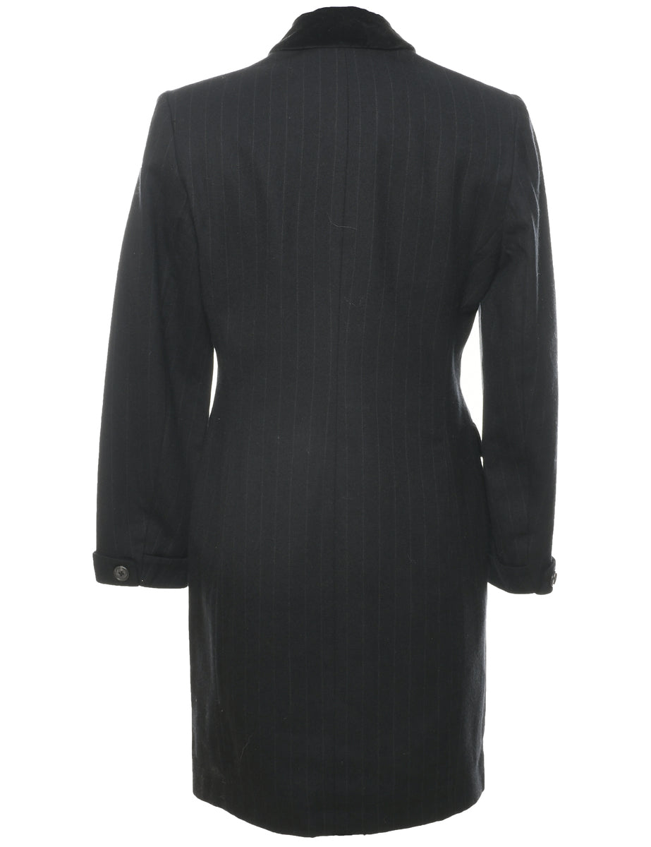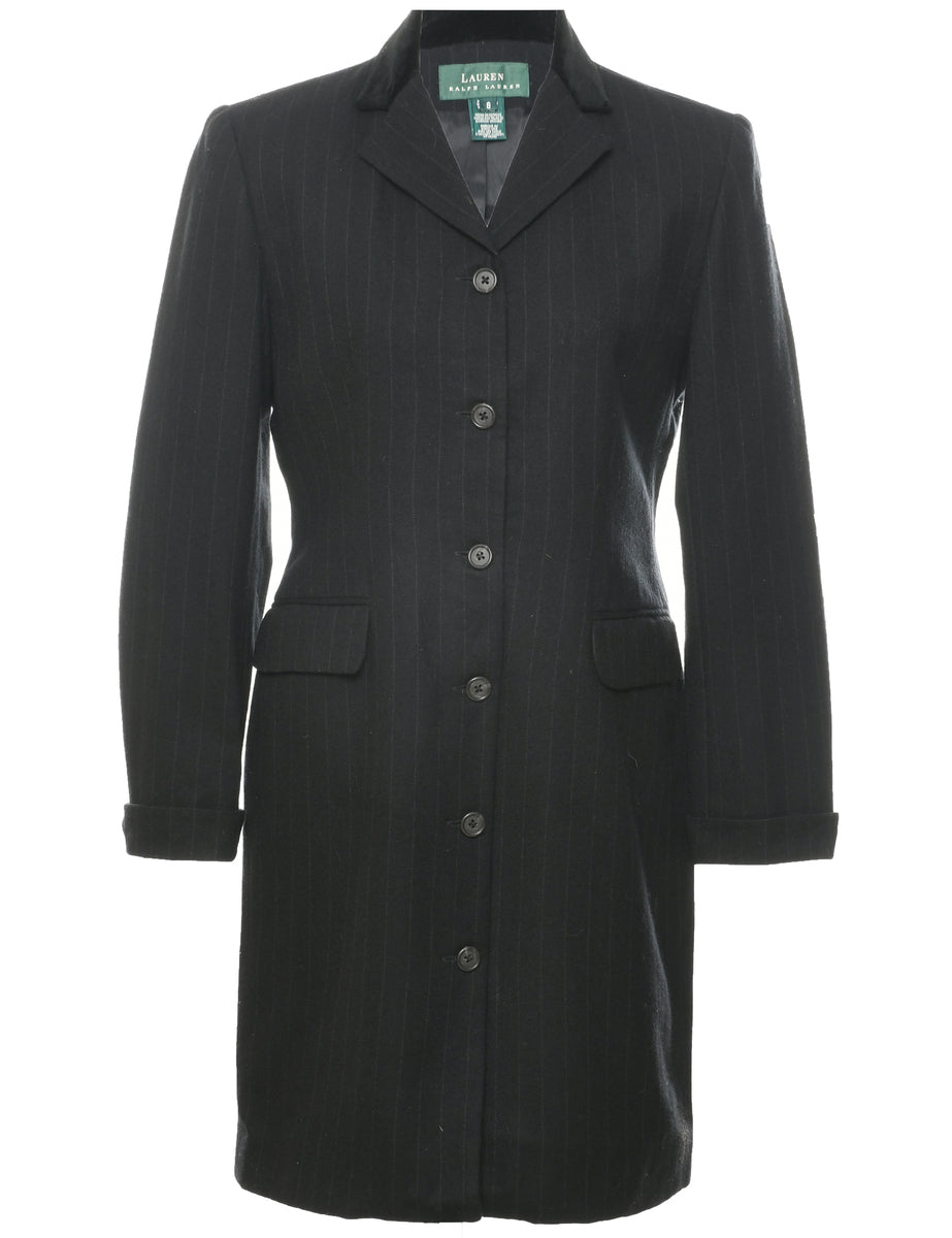 Ralph Lauren striped dress comes in dark grey with a revere front and contrasting trim.