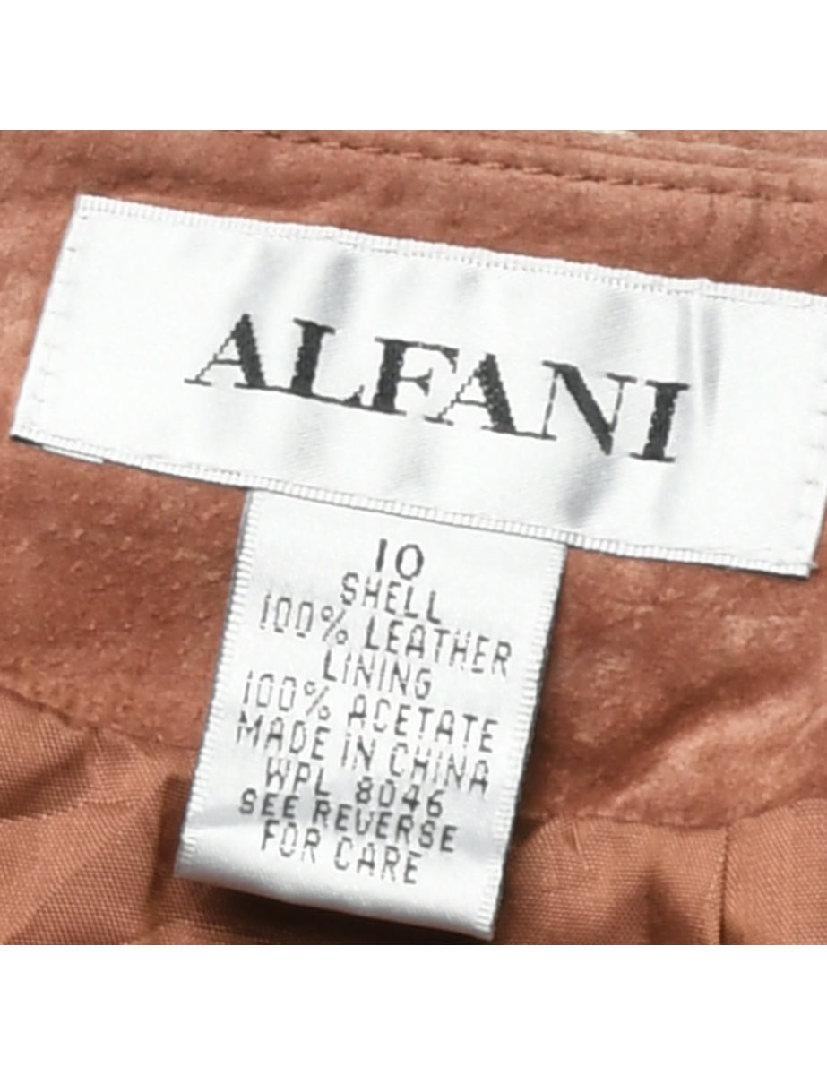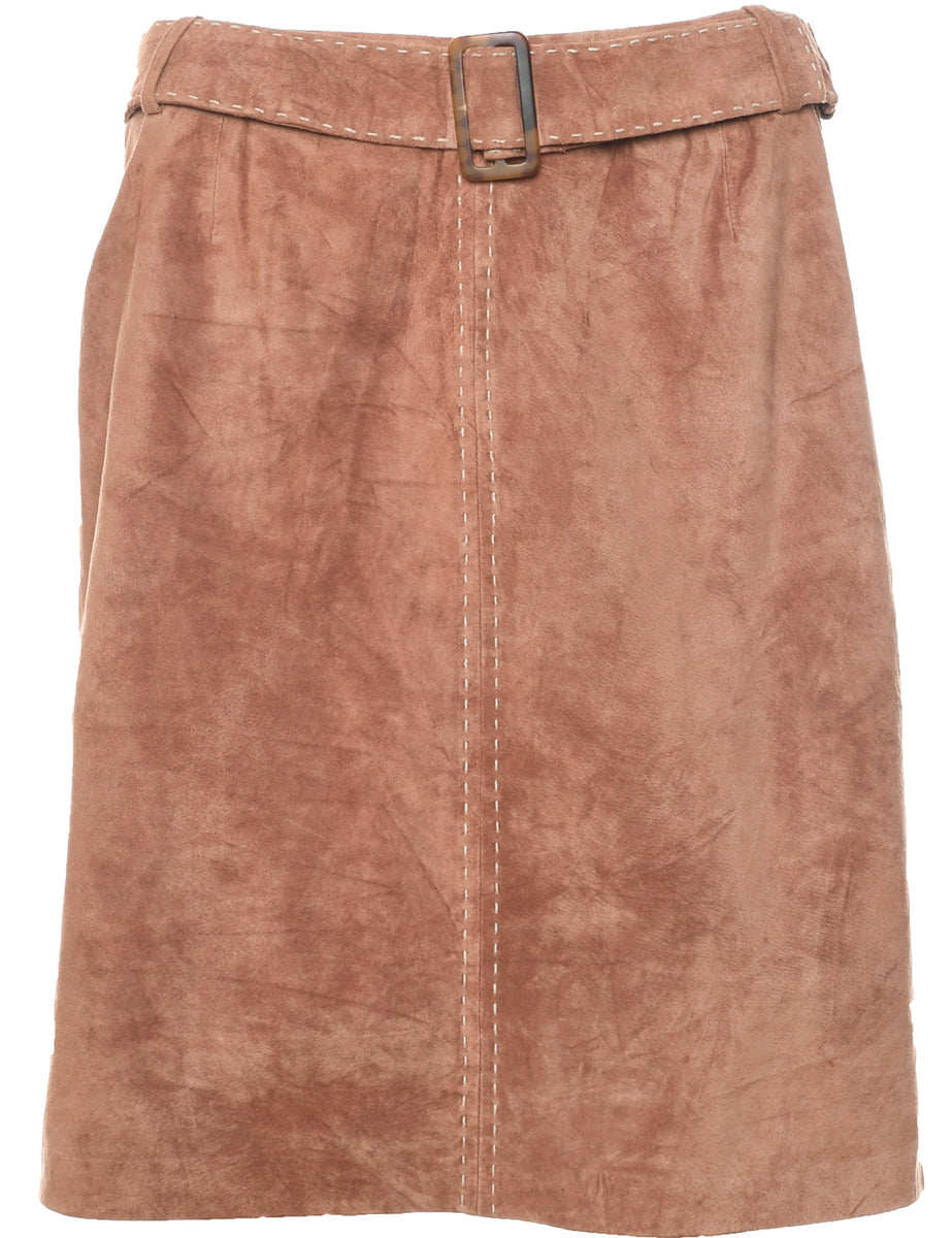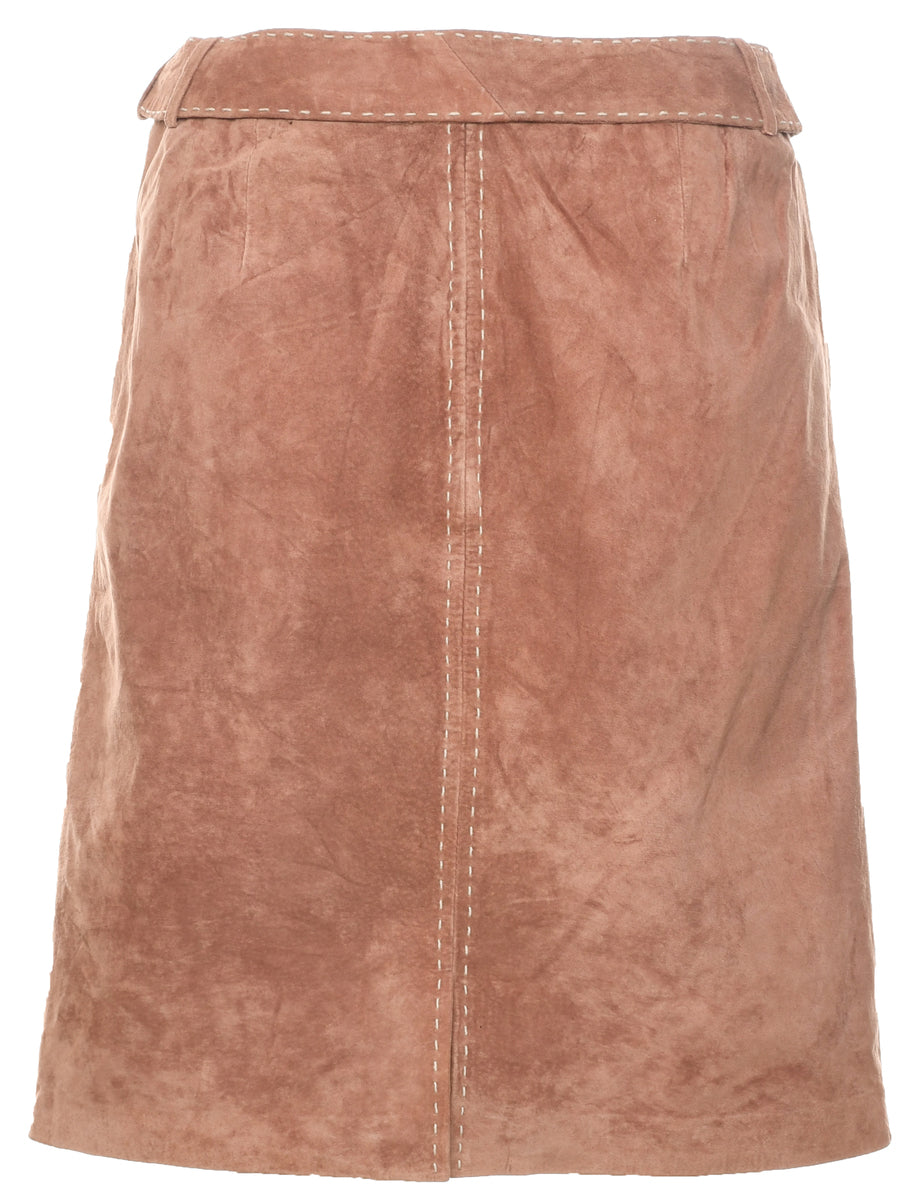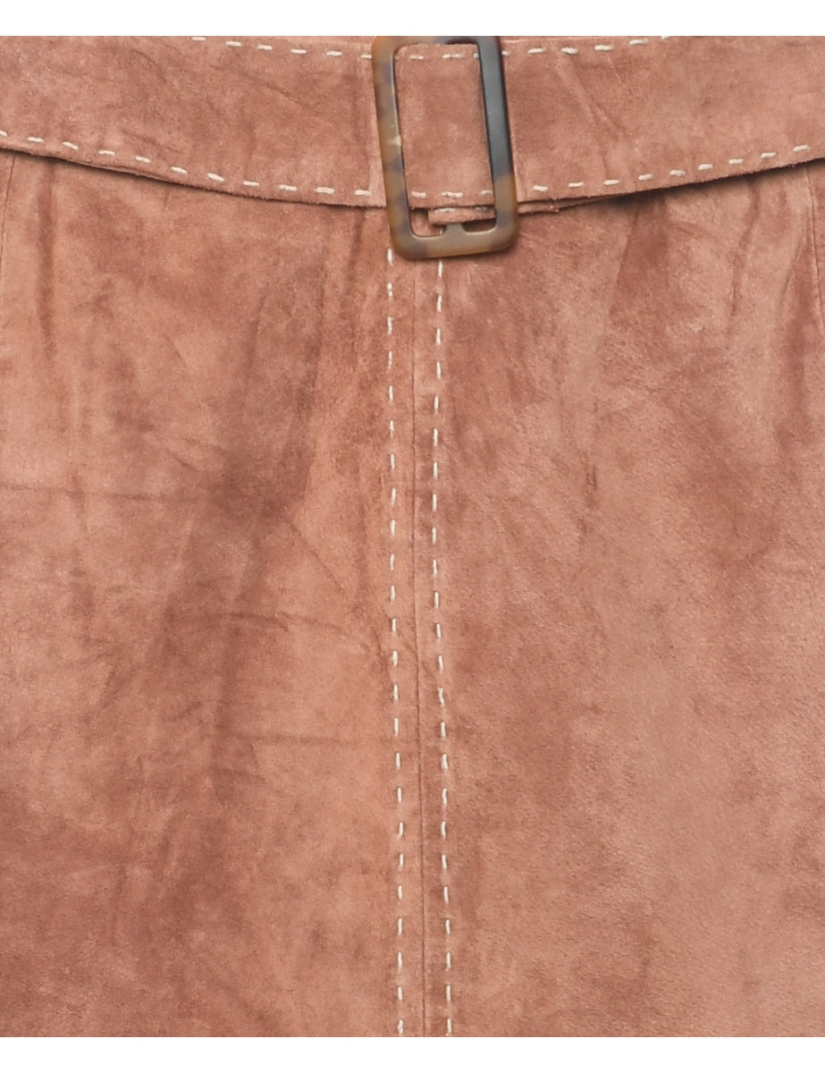 Suede a-line skirt comes in terracotta with slit and a belt.
