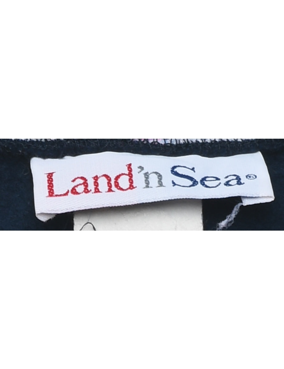 Floral & Cat Print 1990s Sweatshirt - L