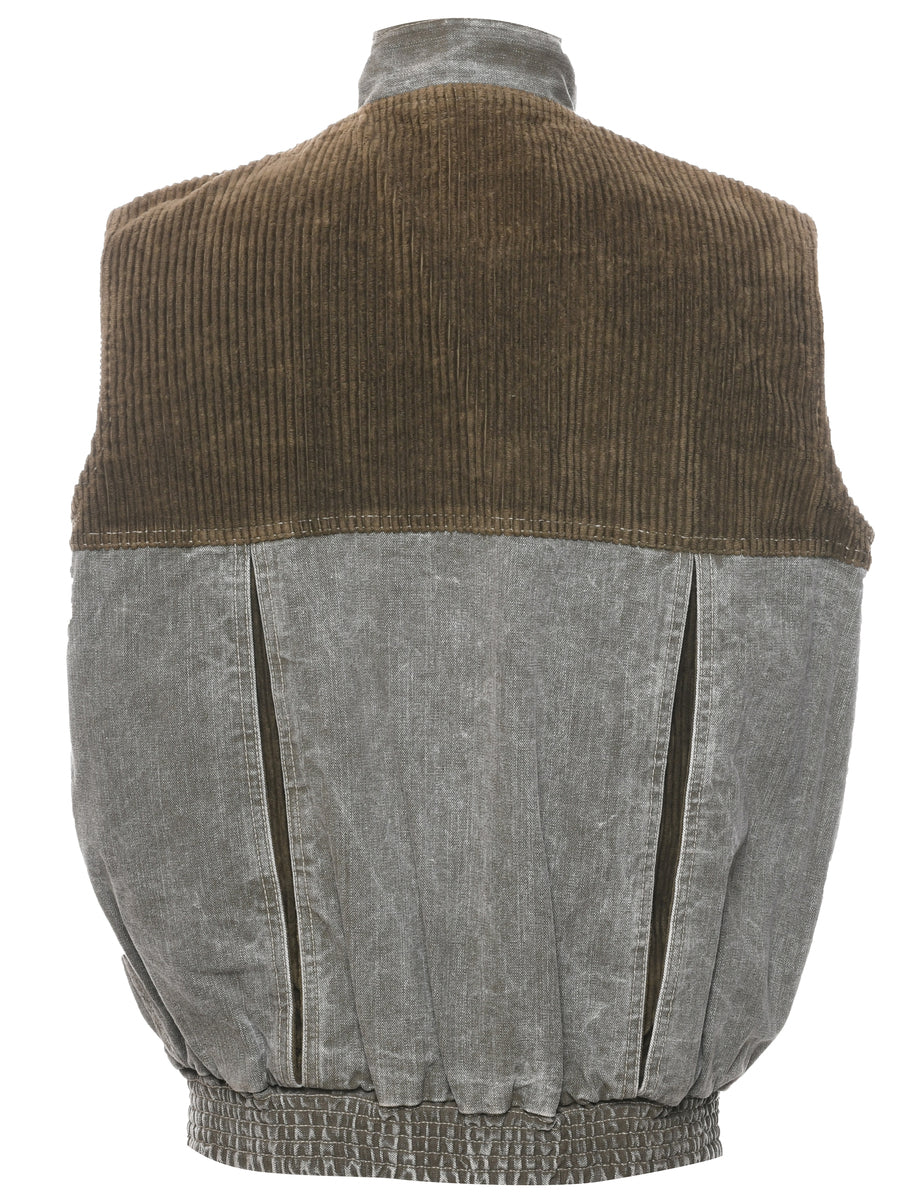Guess corduroy waistcoat comes in light grey & olive green with multiple pockets.