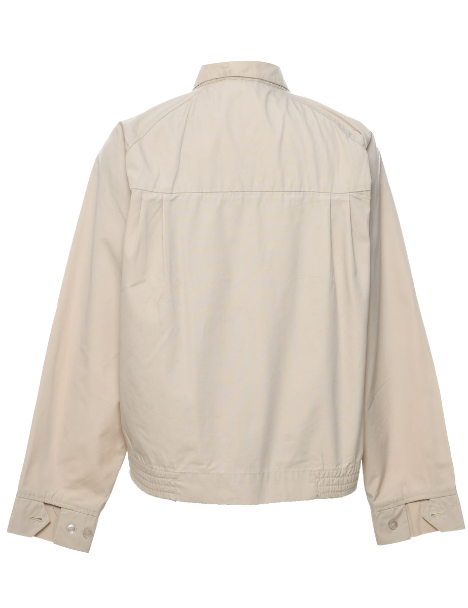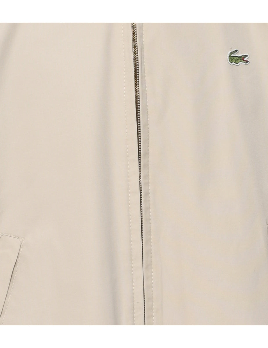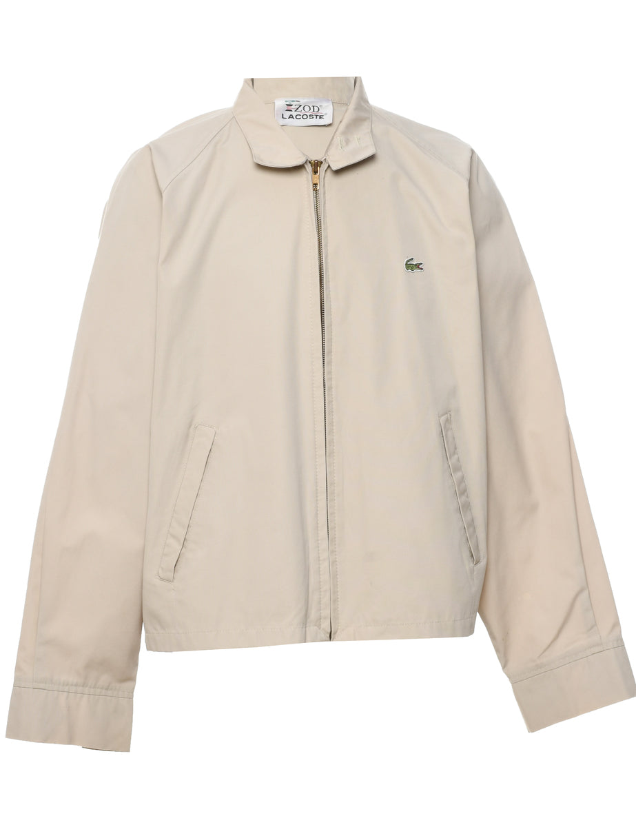 Zip front jacket. Izod Lacoste in beige with multiple pockets and raglan sleeves.