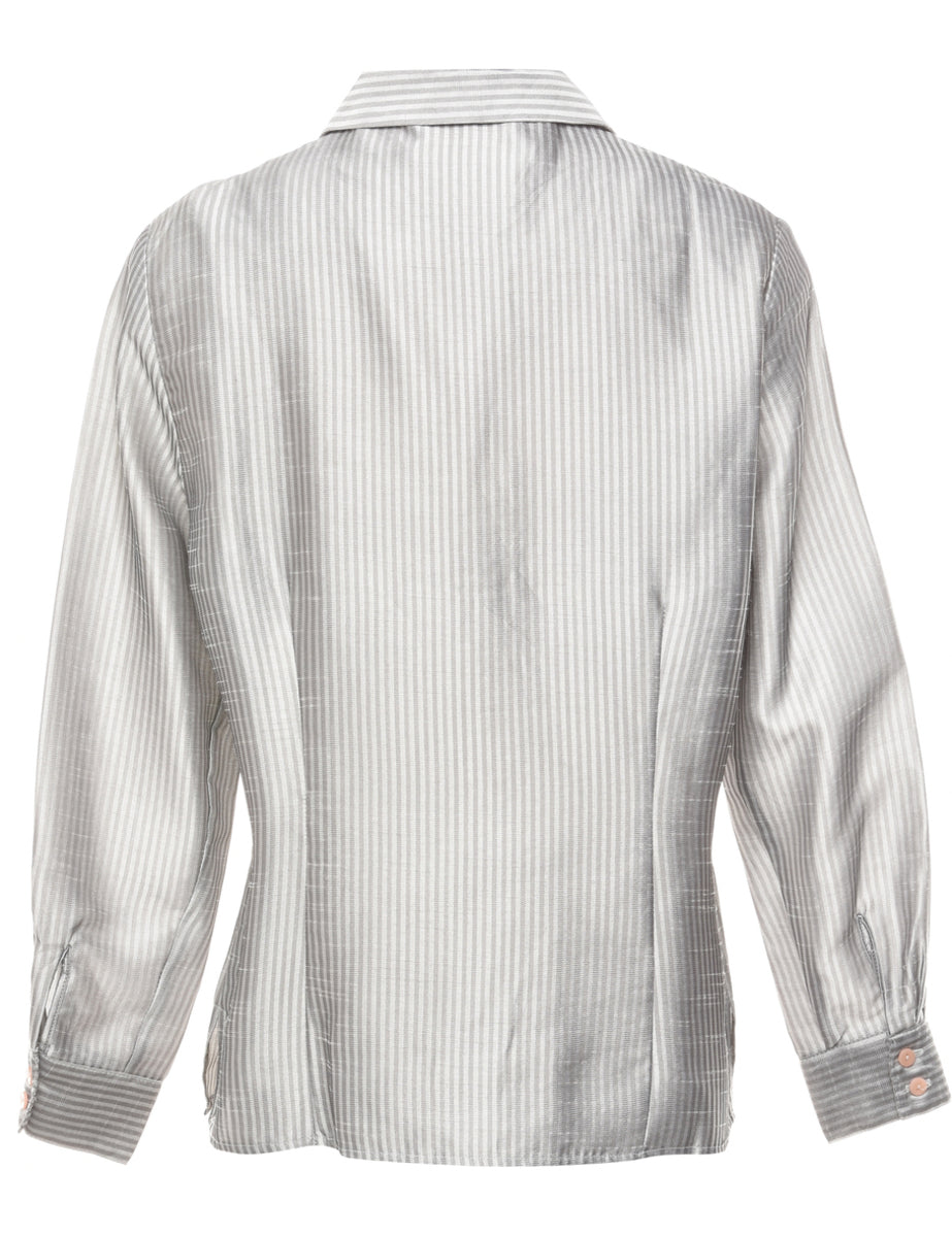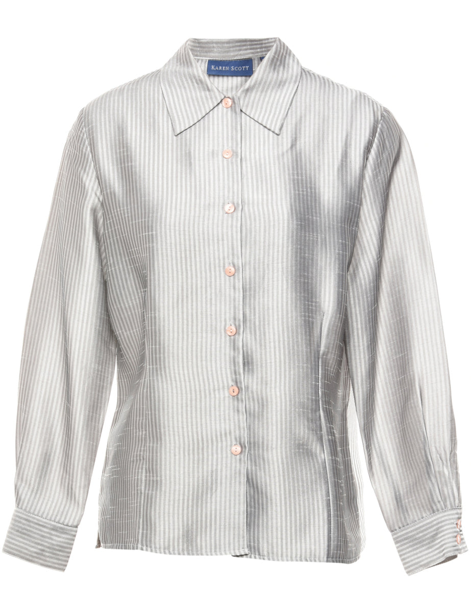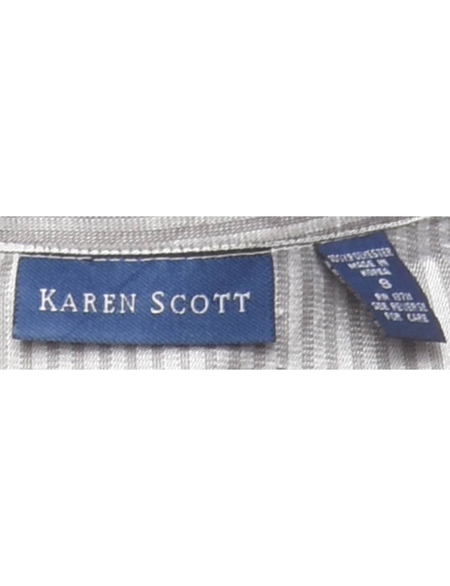 Karen Scott striped shirt comes in grey. The size label mentions S but based on the actual measurements we consider it a size M.
