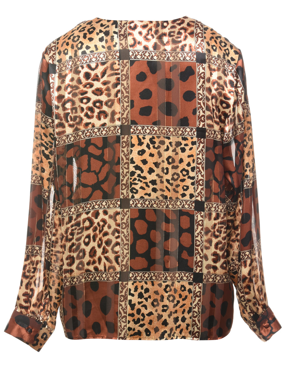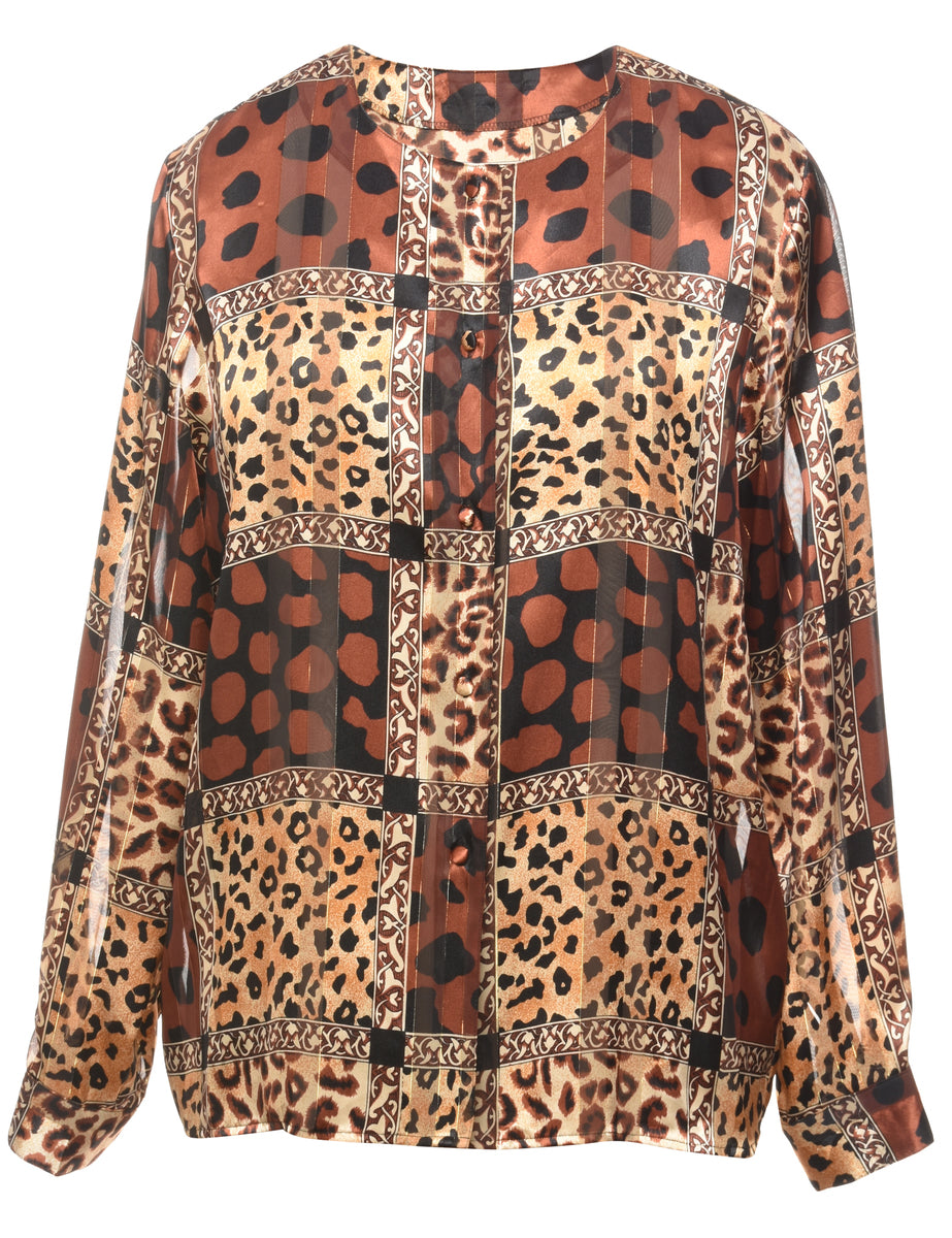 Leopard print blouse comes in multi-colour with a round neck and a button front.