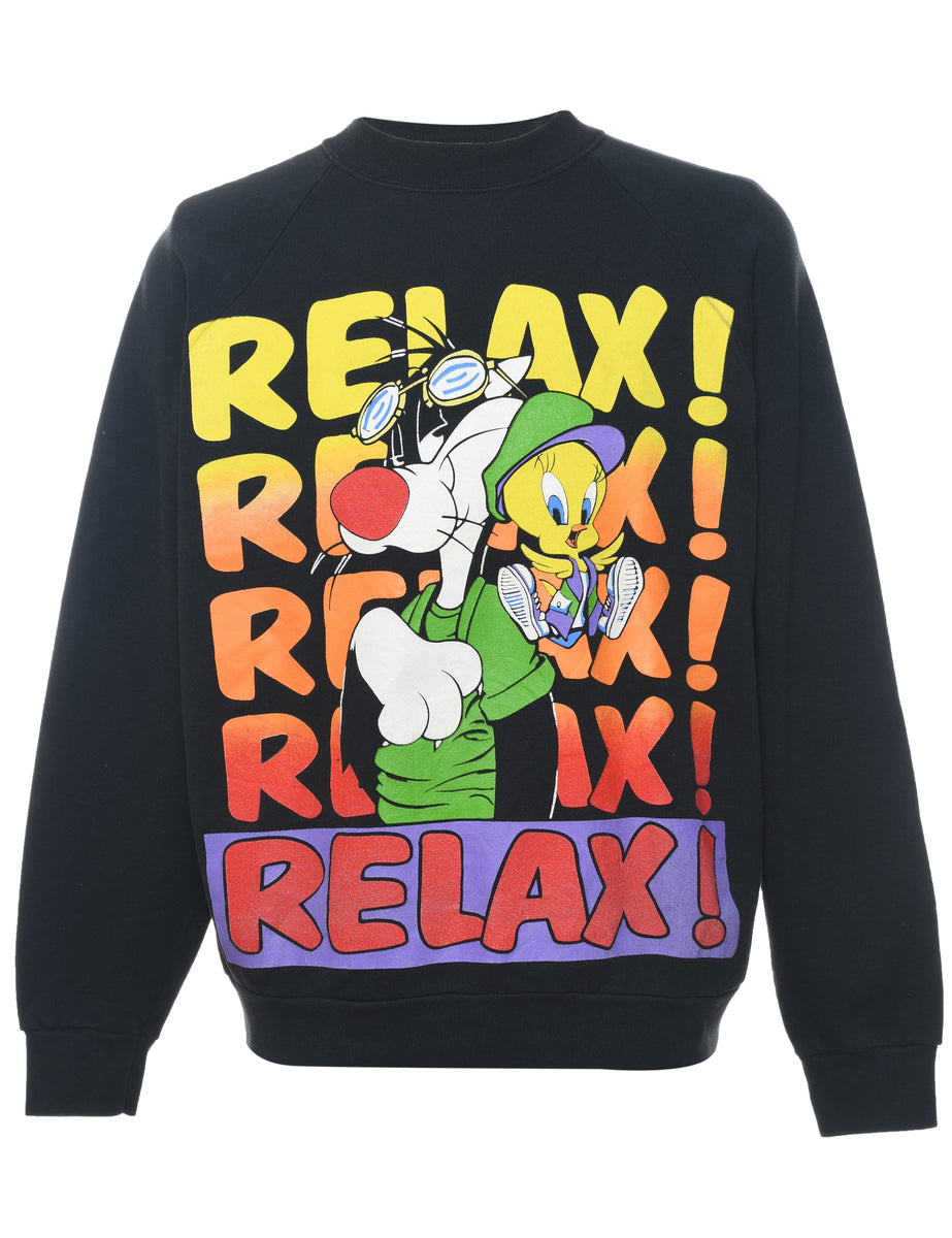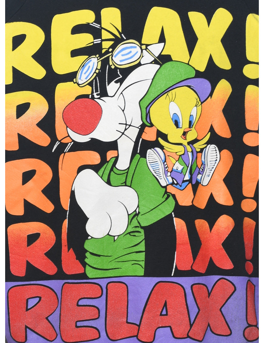 Looney Tunes relax Sylvester, Tweety black 1990s sweatshirt complete with raglan sleeves.