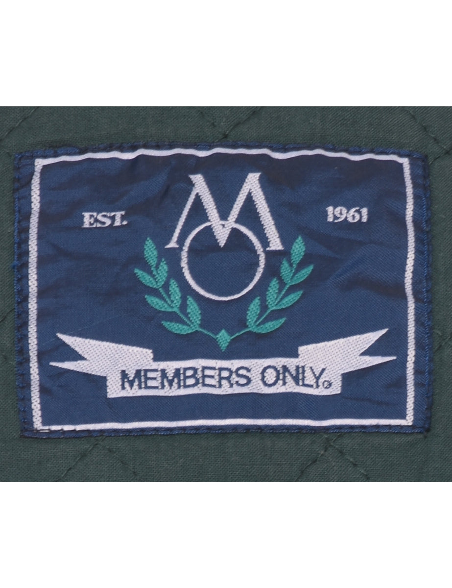 Zip front waistcoat in green with quilted lining and multiple pockets. From the brand Members Only.