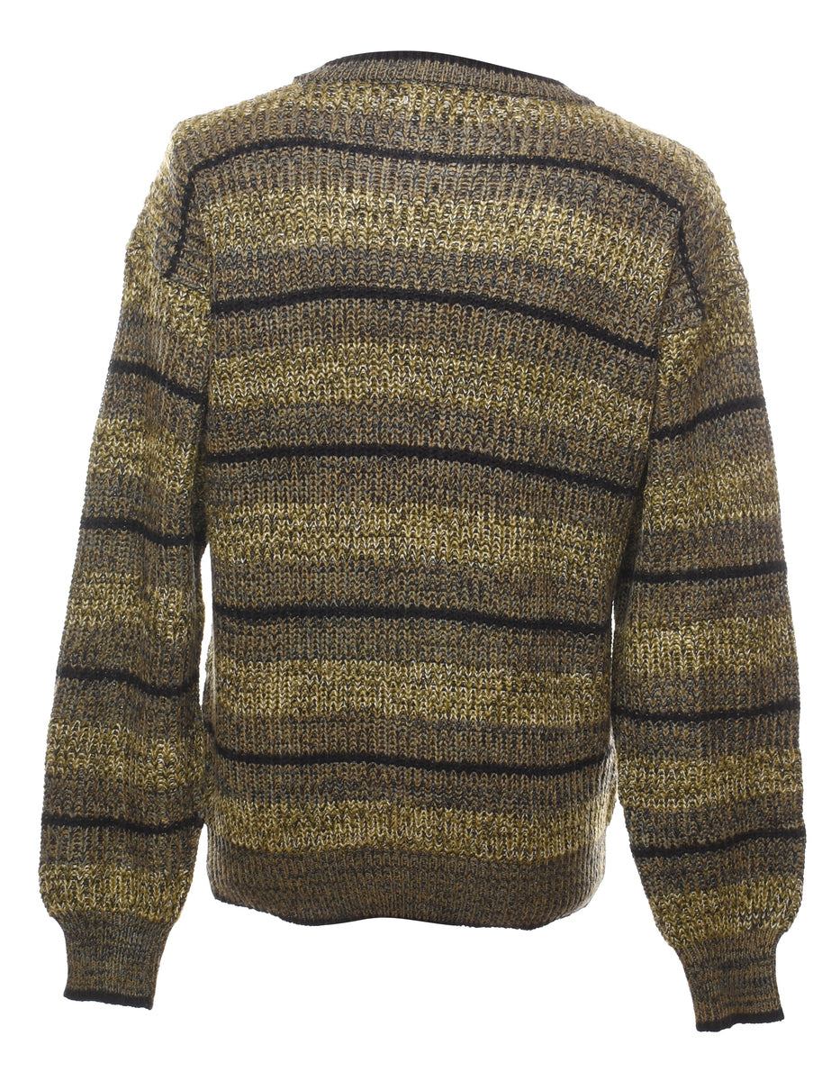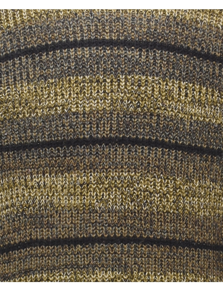 Cable knit jumper. Comes in olive green with stripy pattern, a crew neck.