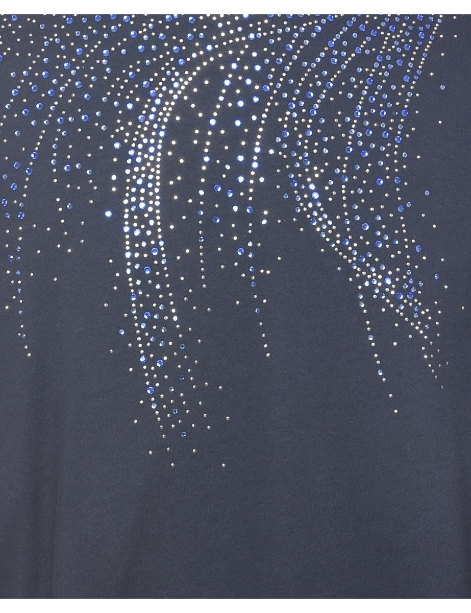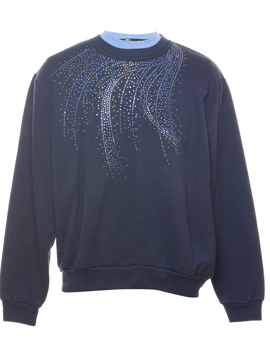 Sparkly Navy & Light Blue Contrast 1990s Sweatshirt - M