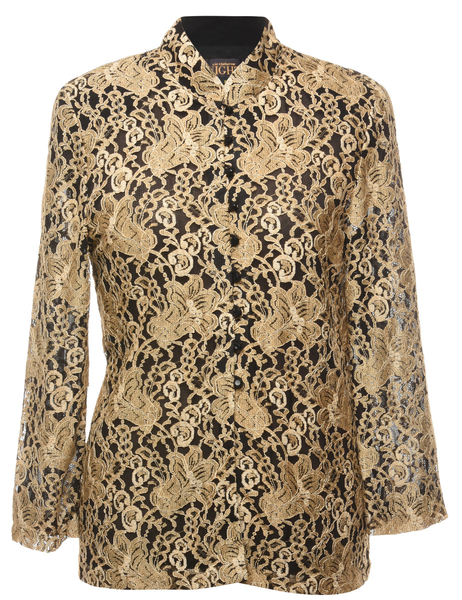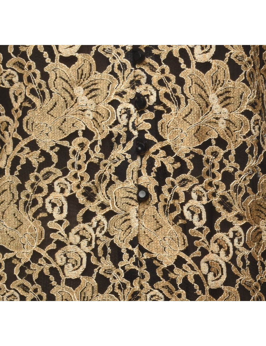 Vintage Black & Gold Floral Lace Jacket - M
