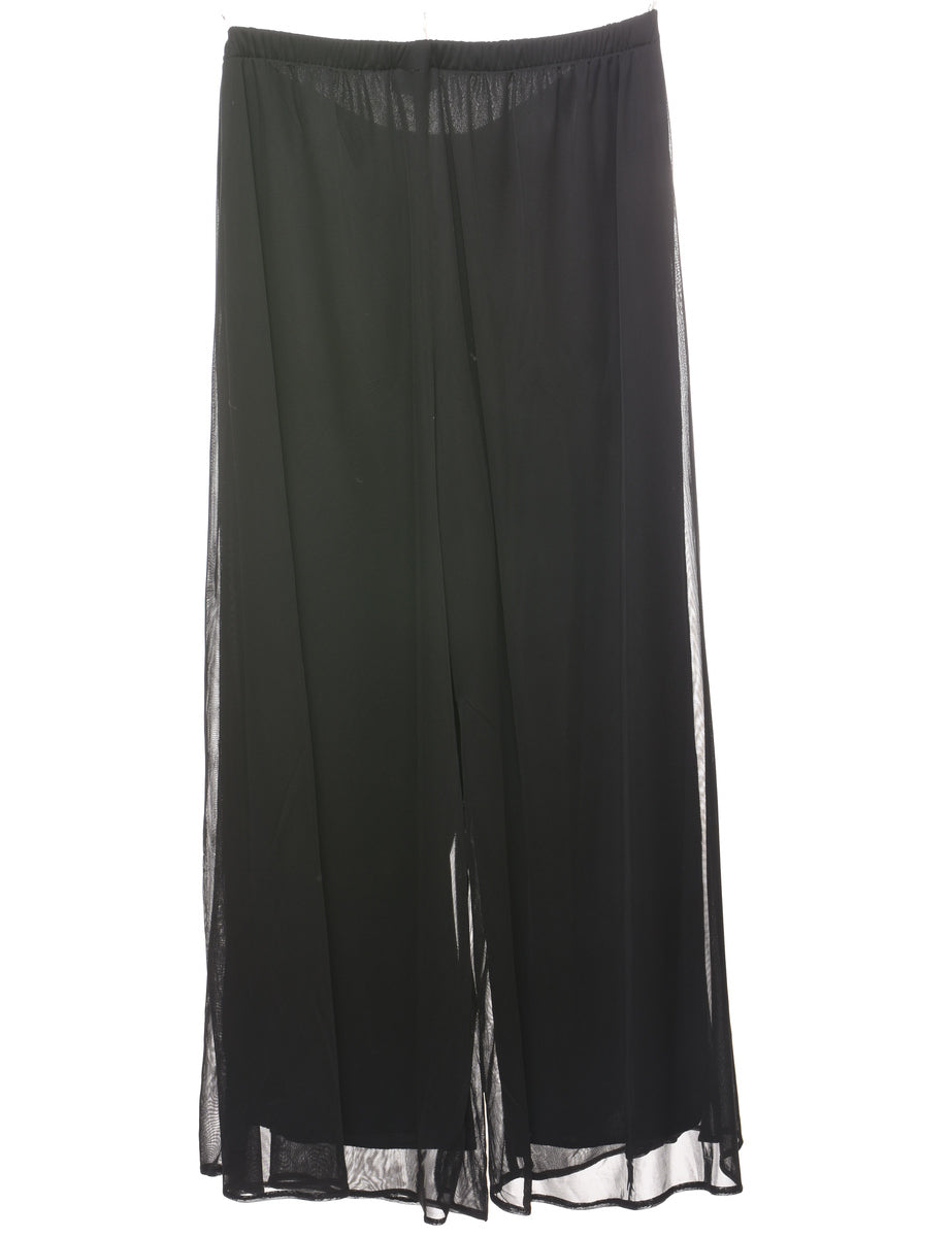Vintage Black Wide-Leg Sheer Trousers - W32 L26