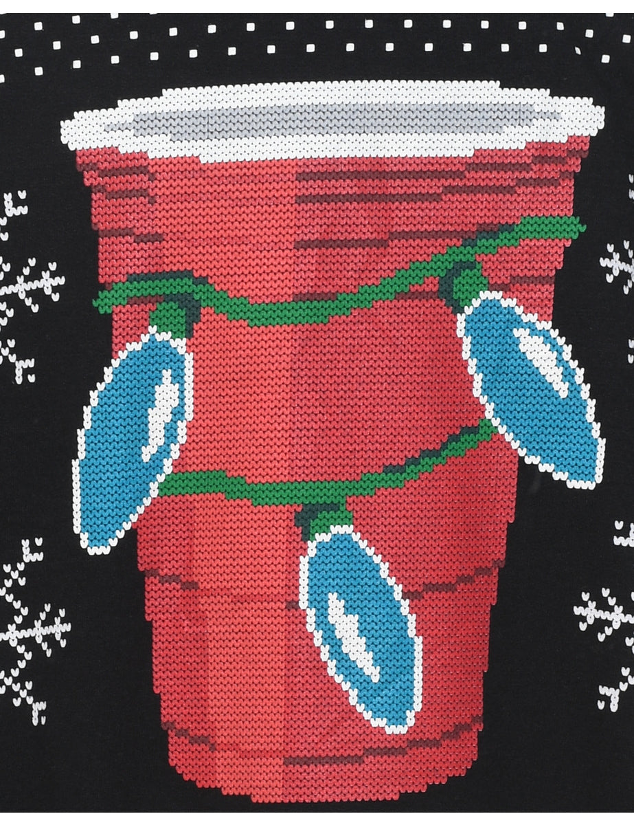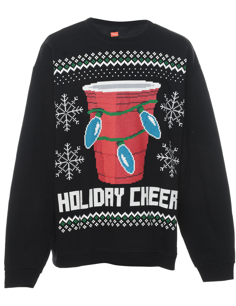 Vintage Festive Season Black Printed Christmas Sweatshirt - L