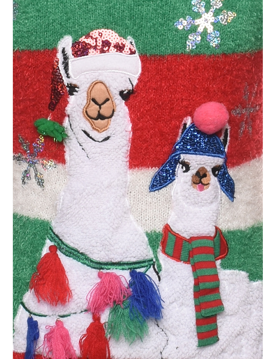 Llama design multi-colour Christmas jumper complete with an applique design and sequins.