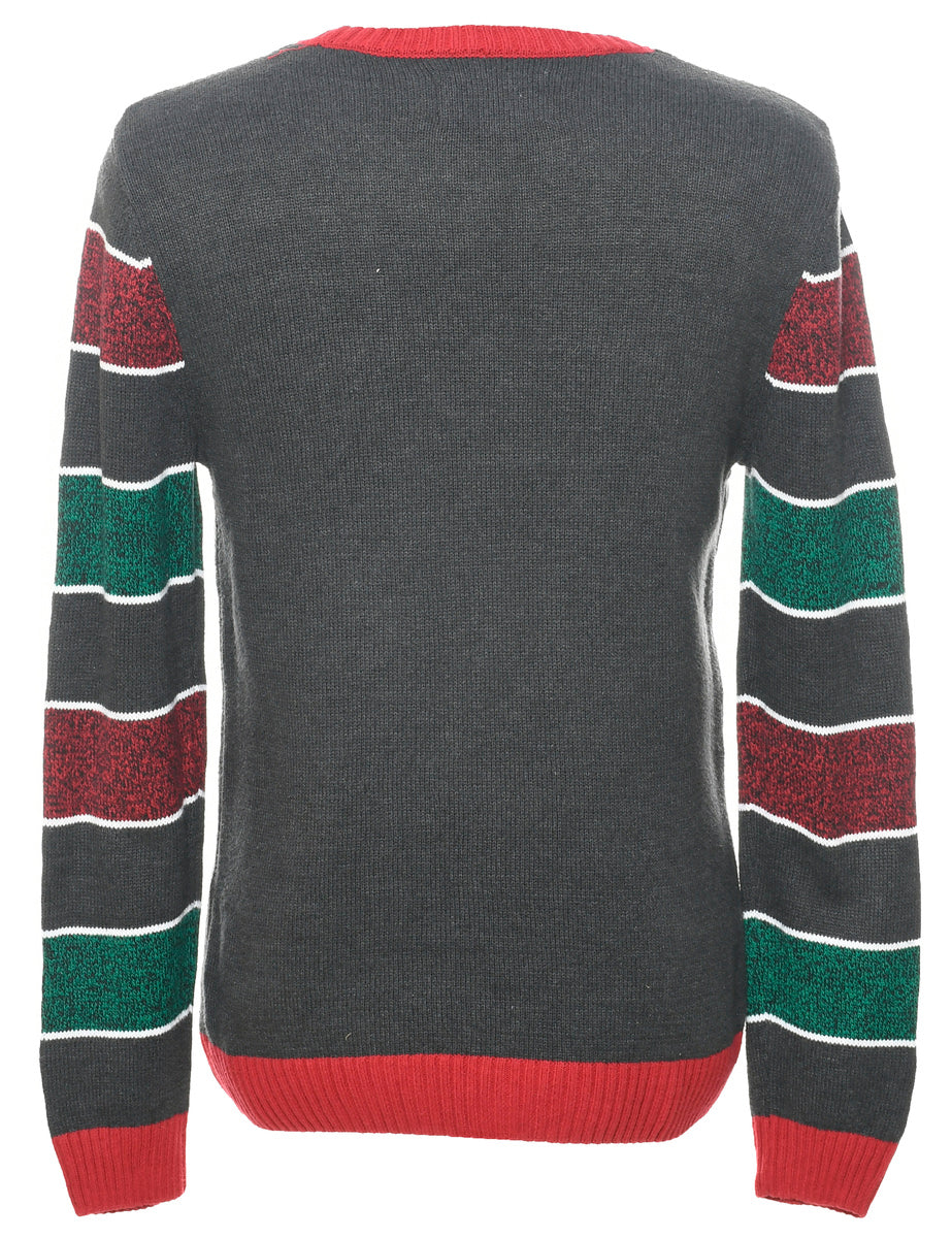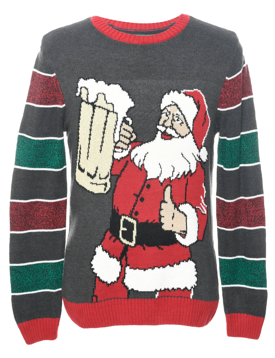 Santa claus christmas jumper. Comes in dark grey with a round neck.